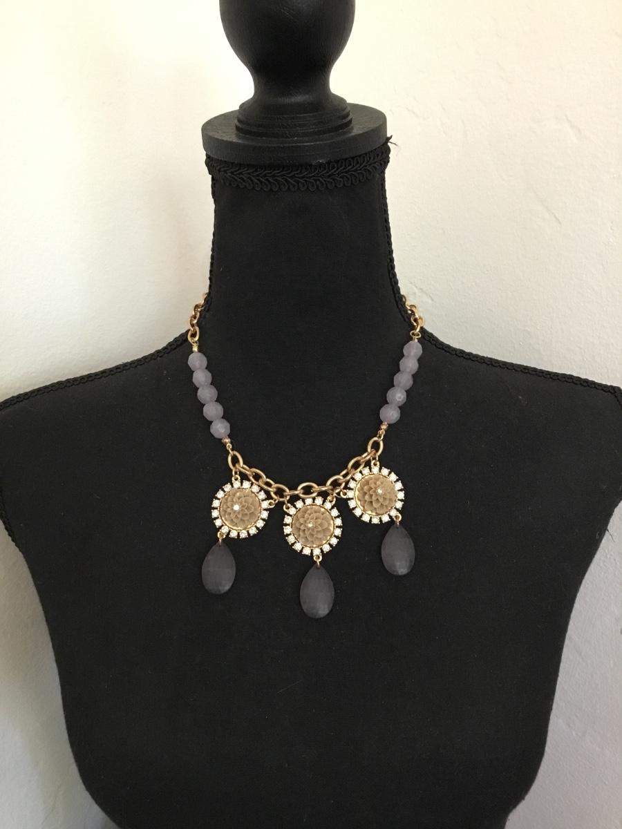 Plunder, violet, purple, rhinestone statement, necklace, gold, toned