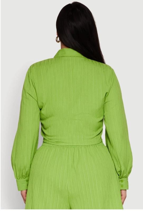 Plus Size Textured Knit Tie Front Crop Top - Green - 3X