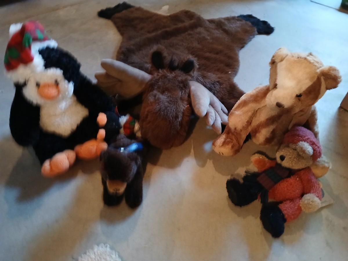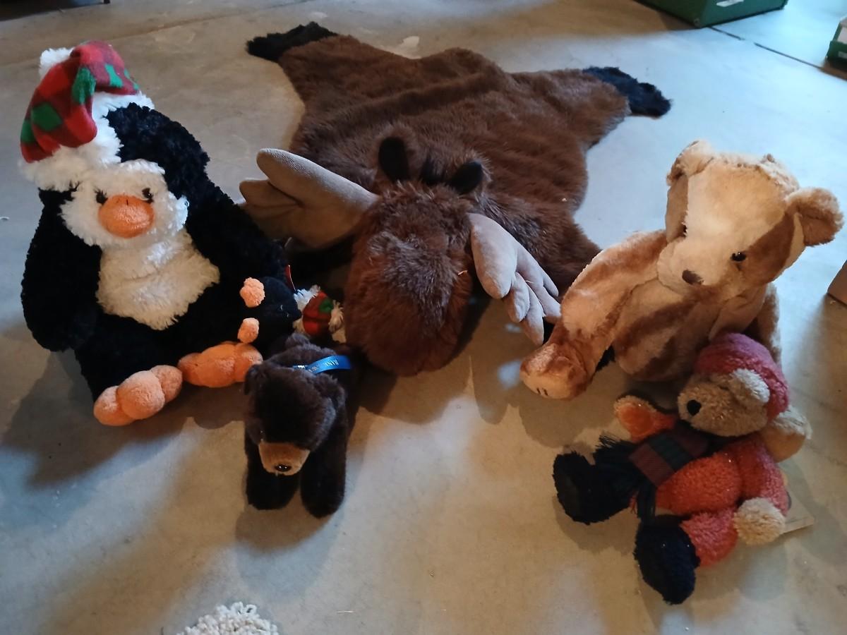 Plush Animal Lot with Moose Rug - Moose rug and a Bunch of friends!