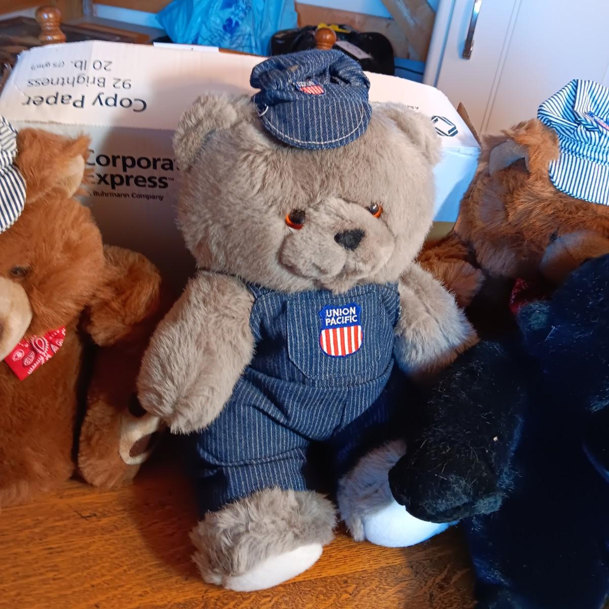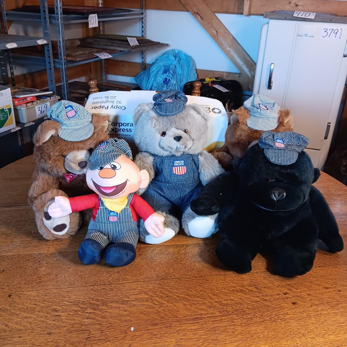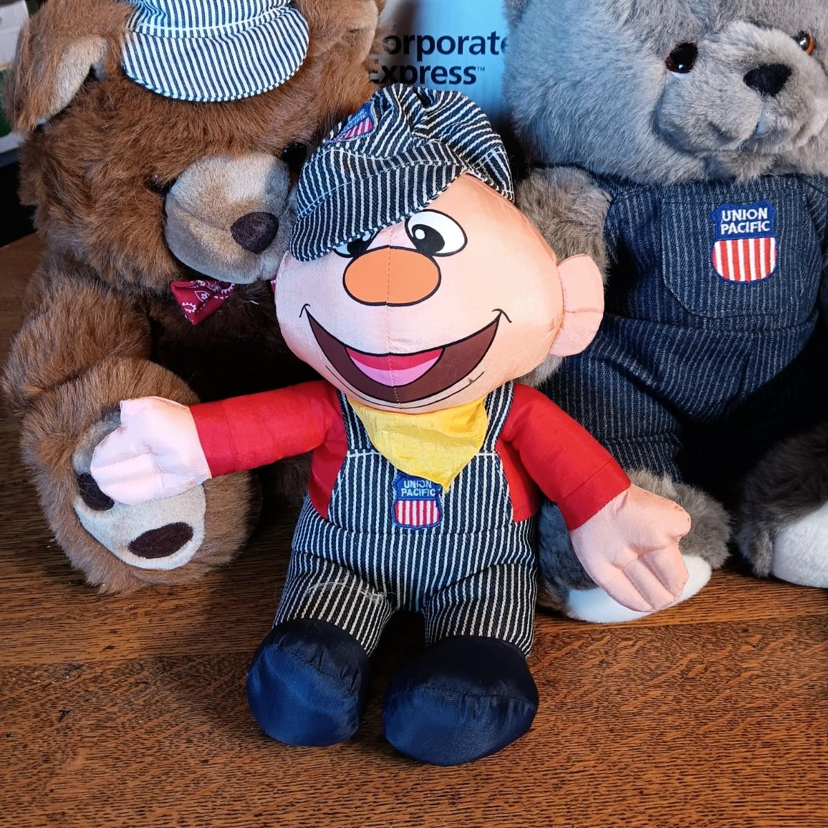 PLUSH ANIMALS DRESSED IN UNION PACIFIC CLOTHES