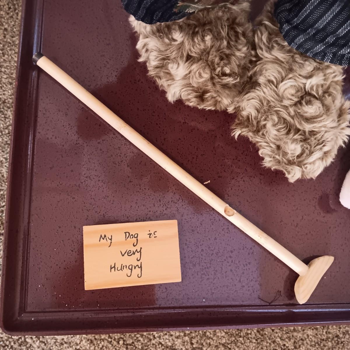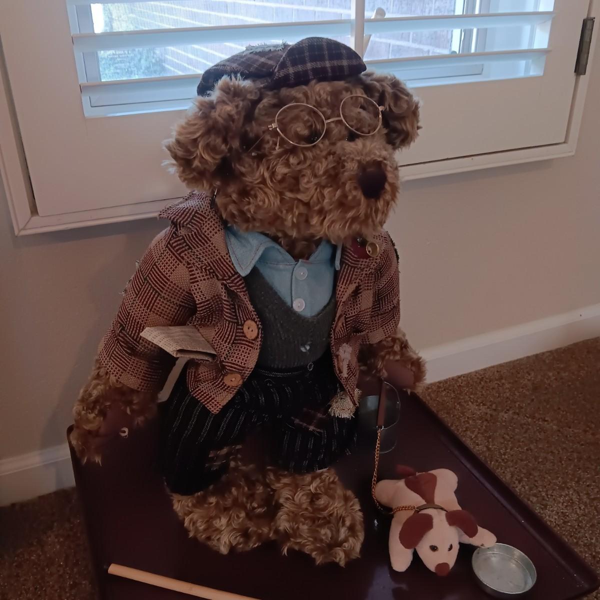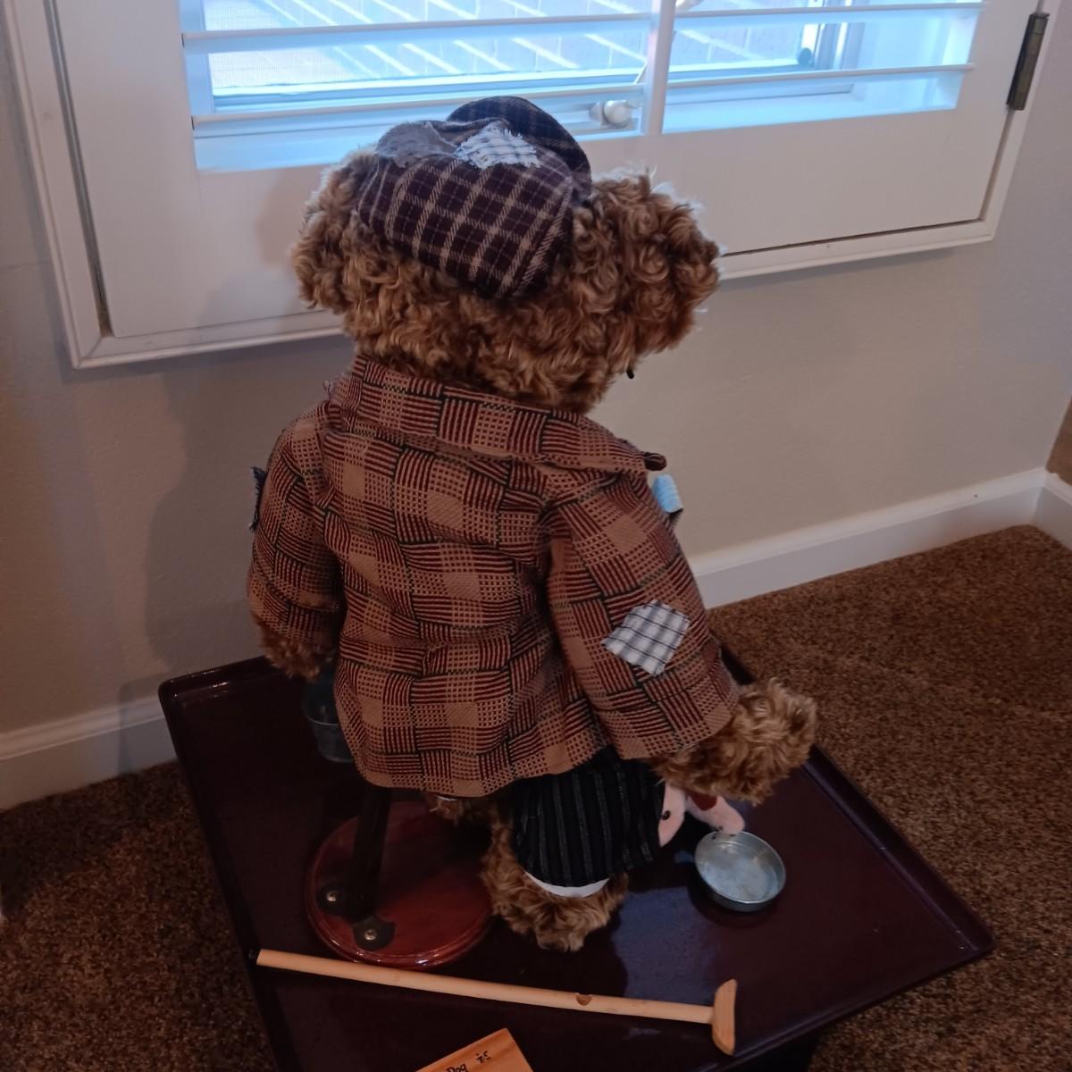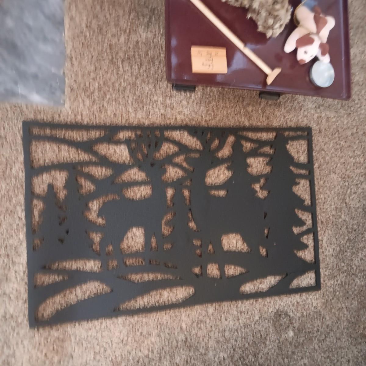 PLUSH BEAR WITH HIS HUNGRY DOG ON A MIKASA 4 LEGGED TRAY & A THICK RUBBER DOOR MAT