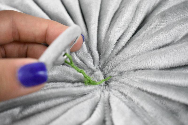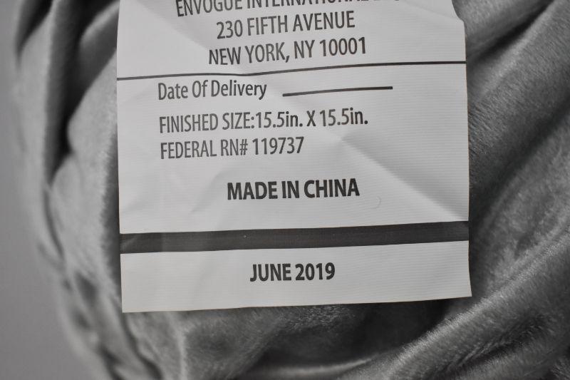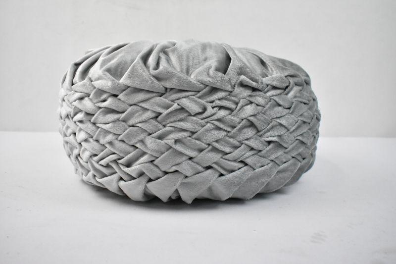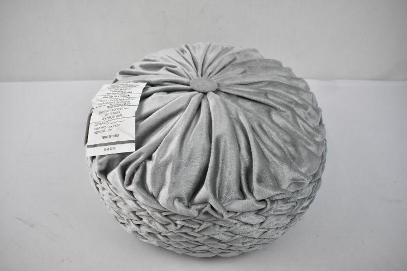 Plush Pouf Pillow, Silver/Gray Velvet, 15.5" x 15.5" - Button Needs Reattachment
