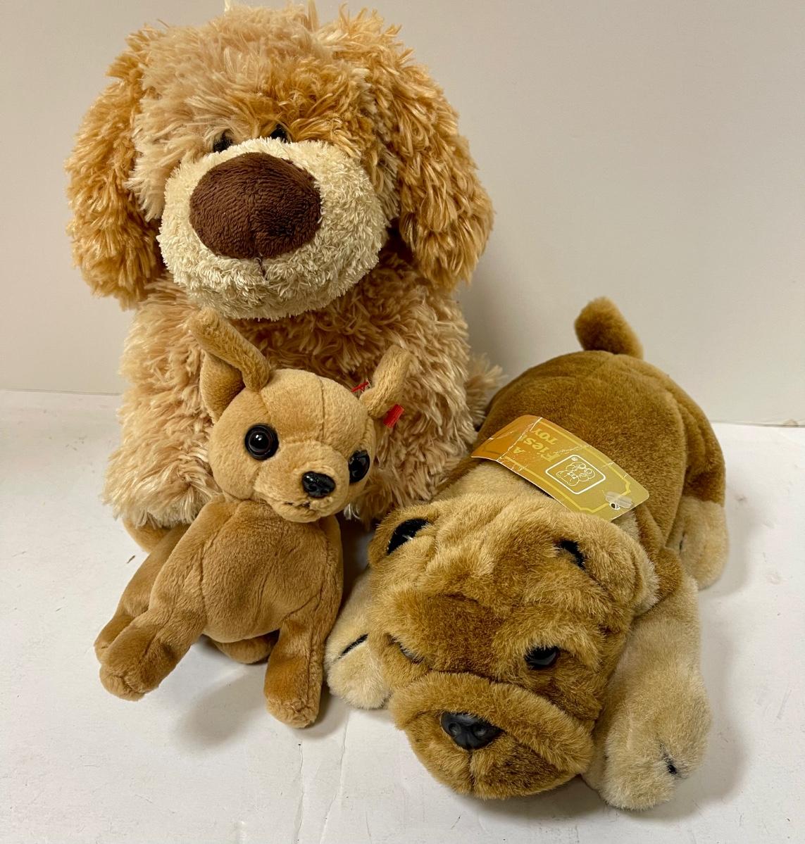 Plush puppy dog lot - 3 dogs - pug, chihuahua, and retriever
