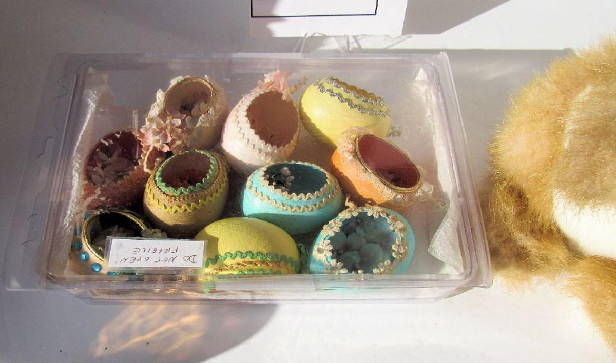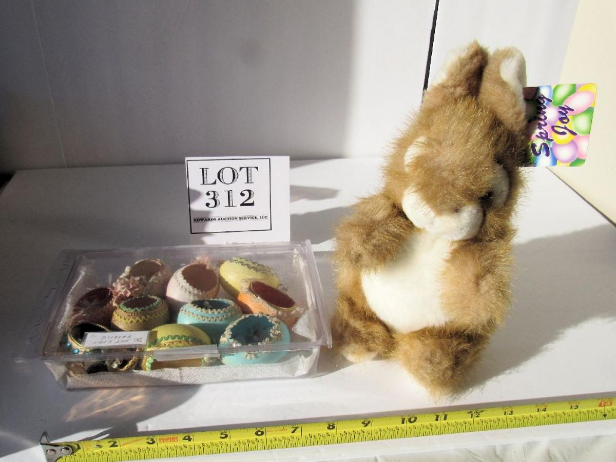 Plush Rabbit With Tag and Real Egg Shells Decorated for Easter