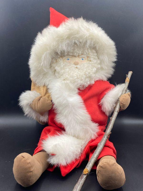 Plush Santa Claus Doll. Has his walking stick and a bag of toys. Might be homemade, no tags