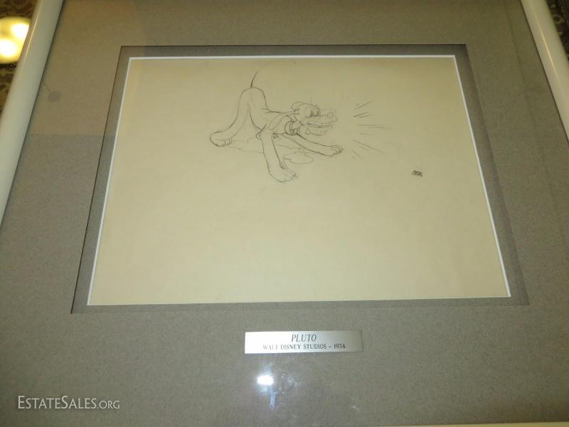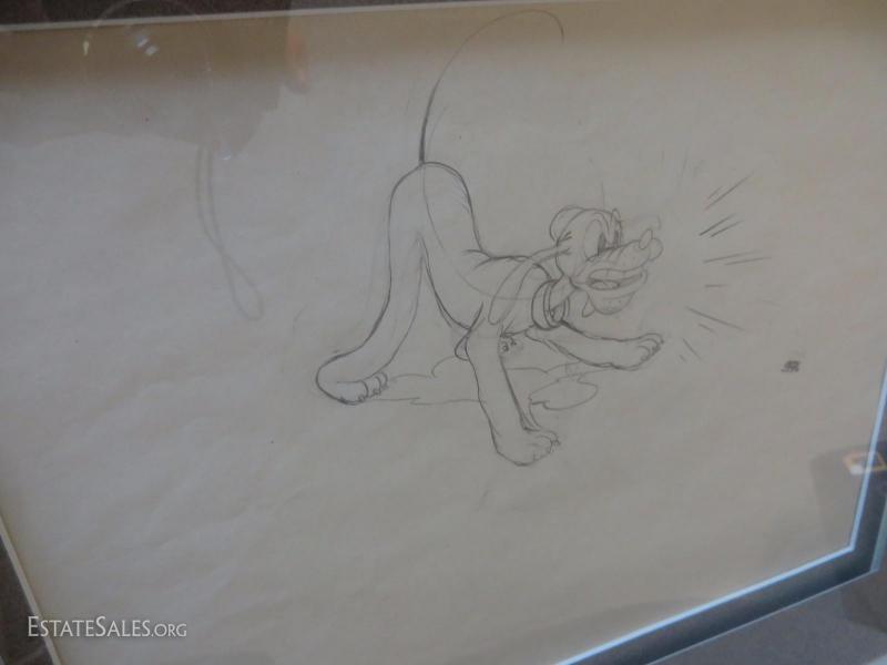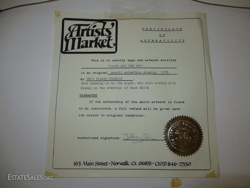 Jim Algar - Pluto anjd the Bug Pencil Animation - Walt Disney Studios 1934 - with Certificate - Frame Size 19x16 - Visual Area Art 9x12 approximate.