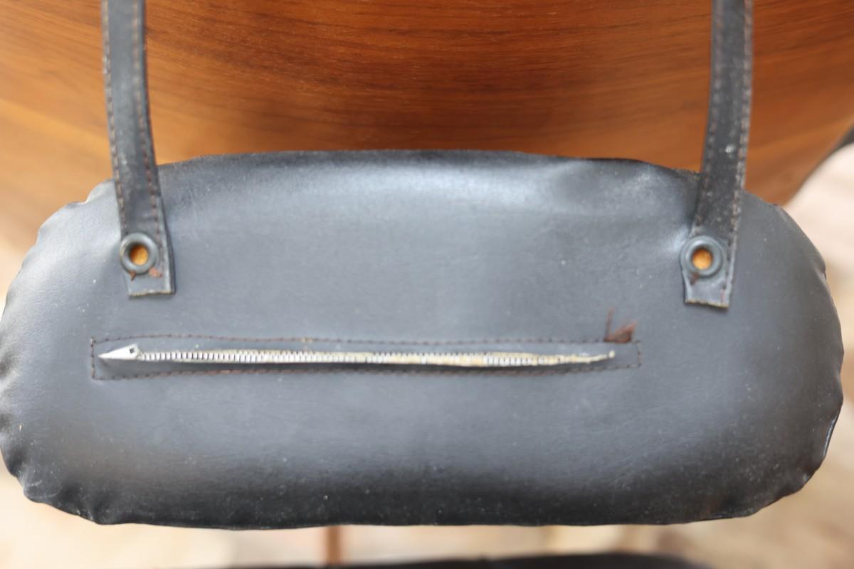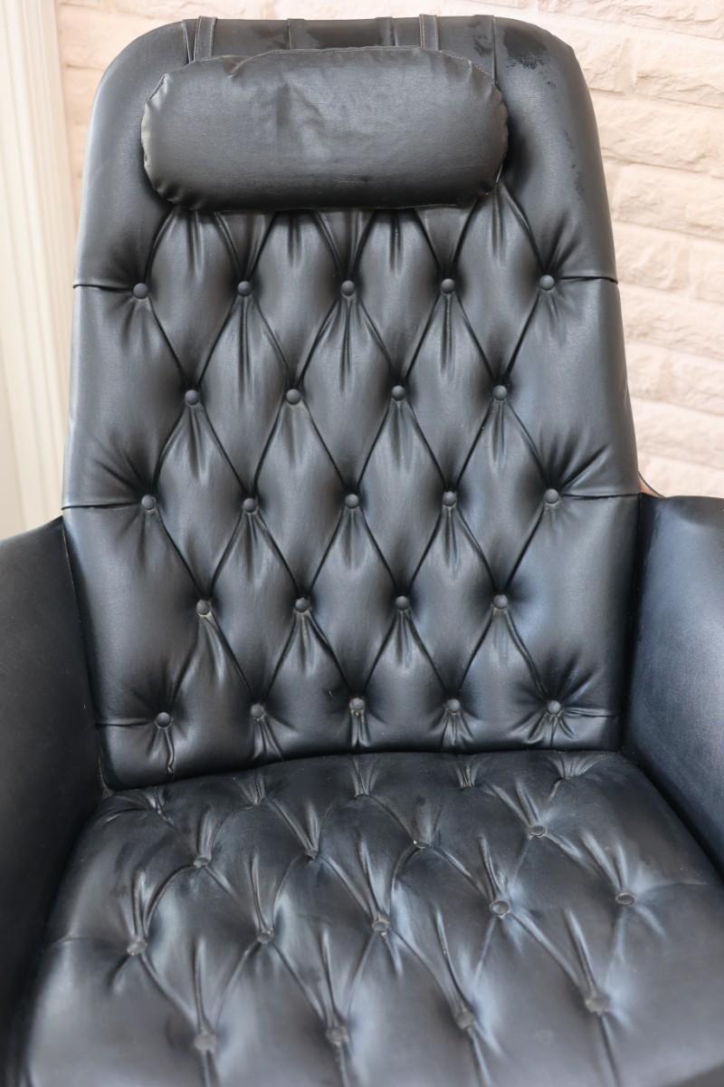 The top of the ottoman pulls right out of the base, it is missing the stopper. Please look through the pictures of any wear.