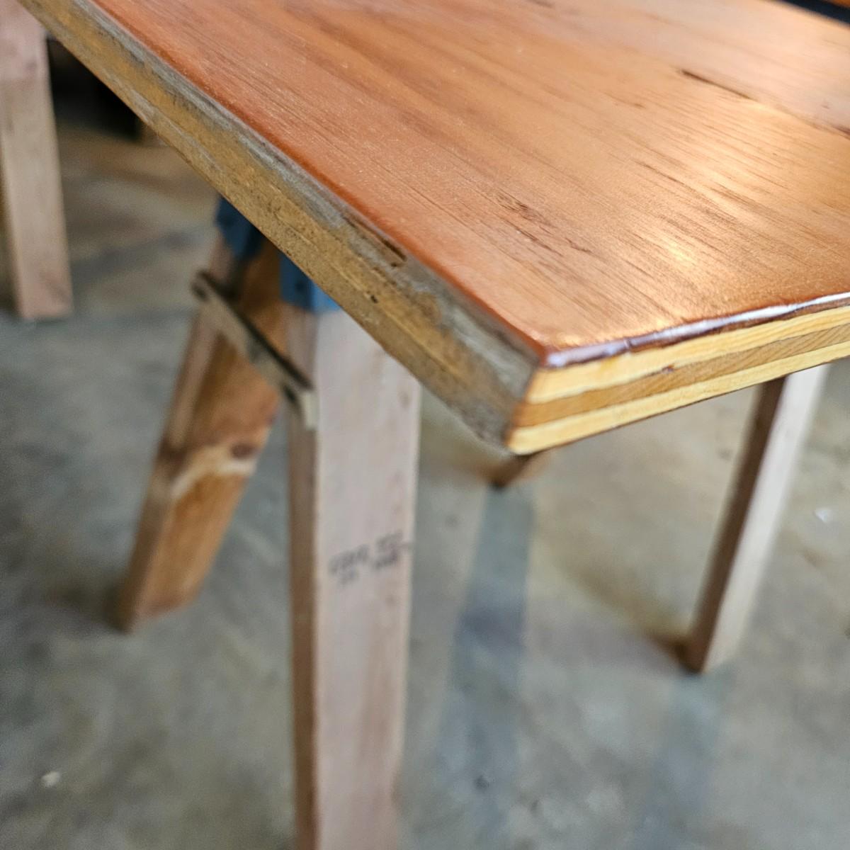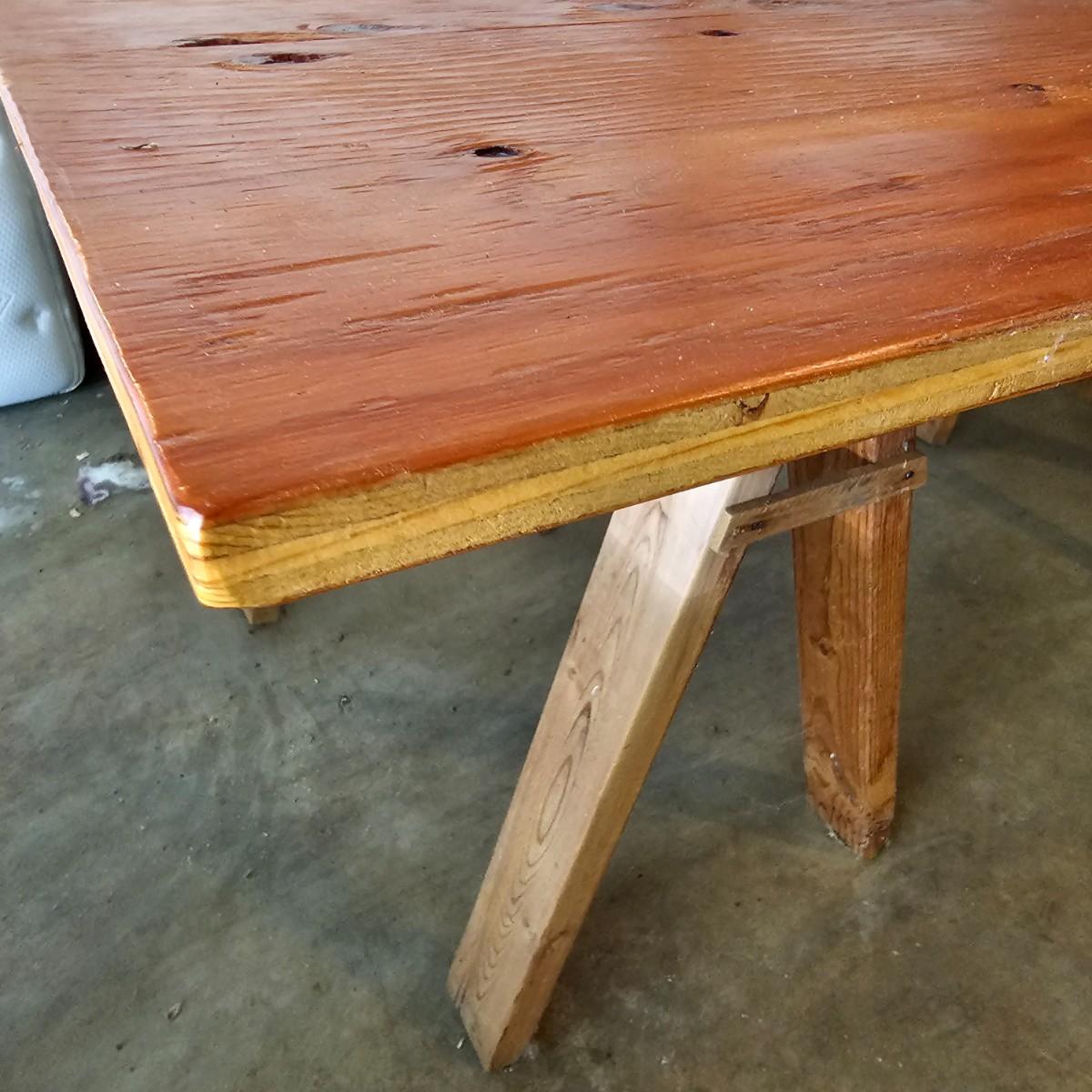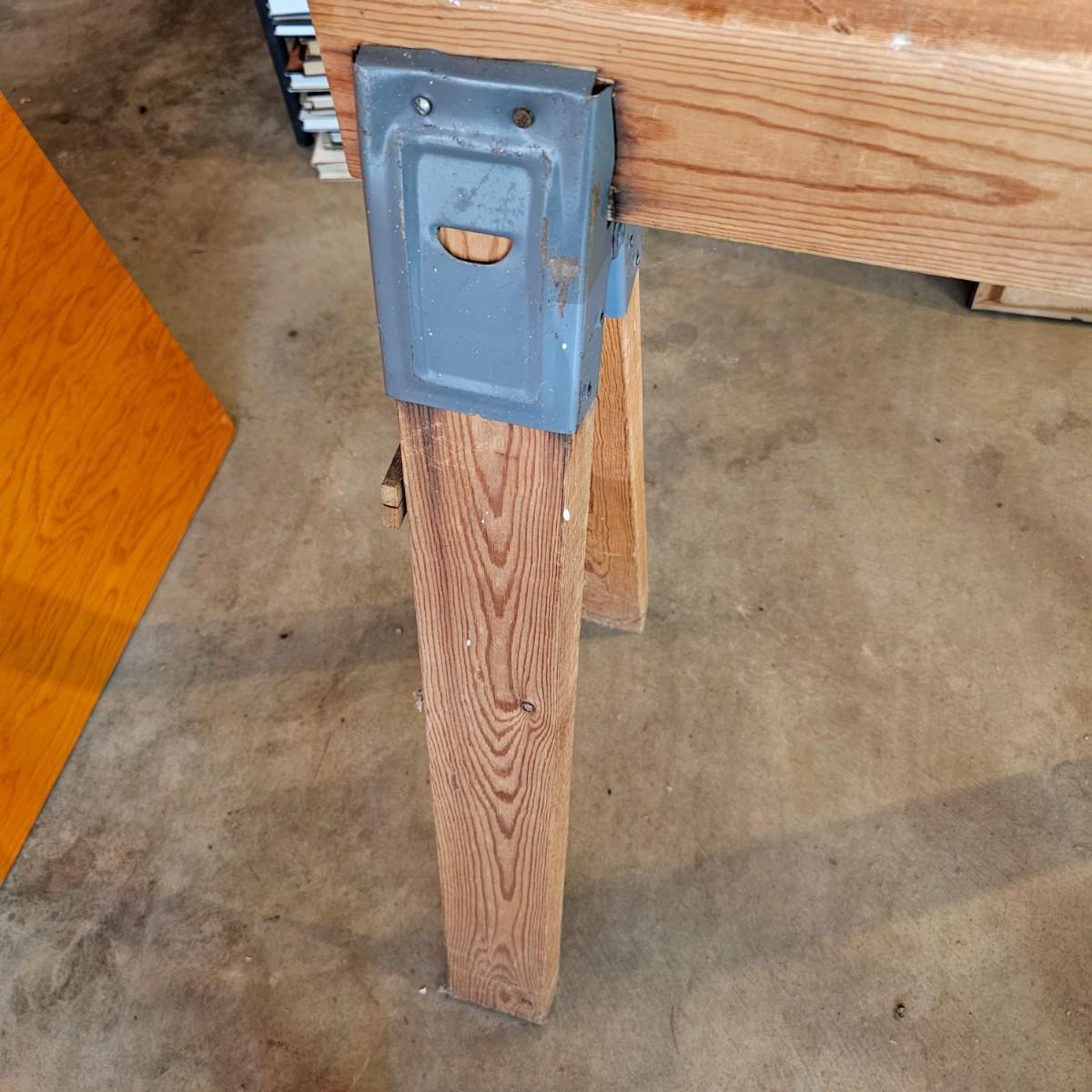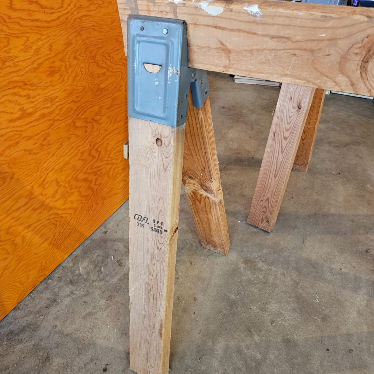 4' x 6' sheet of 3/4" plywood, finished both sides. Also two sawhorses, 2" x 4" construction with metal brackets, each 18" x 33" x 30"H. See photos for details. Local pickup only.