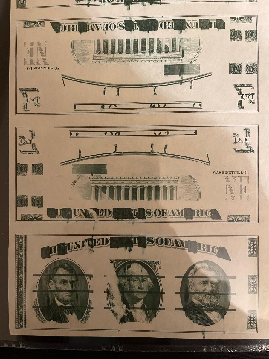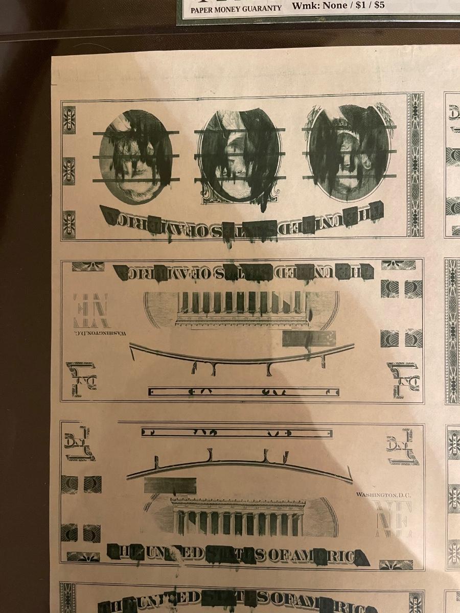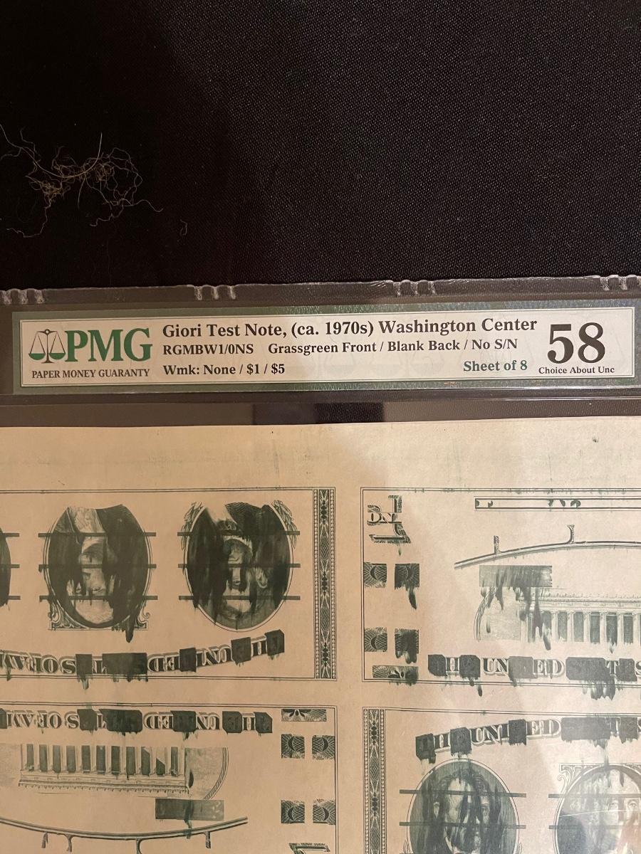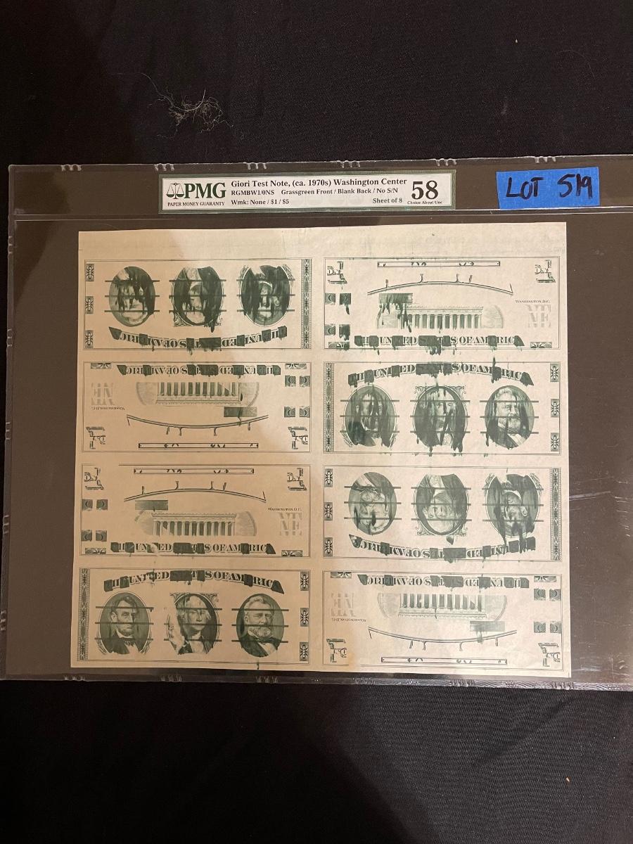 PMG Cert. Giori test note (circa 1970s) Washington Center sheet of (8)