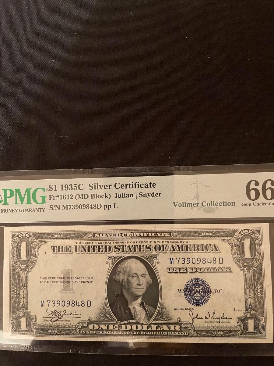 PMG $1 1935 c Silver Cert. EPQ bb gem inc. Vollmer Collection