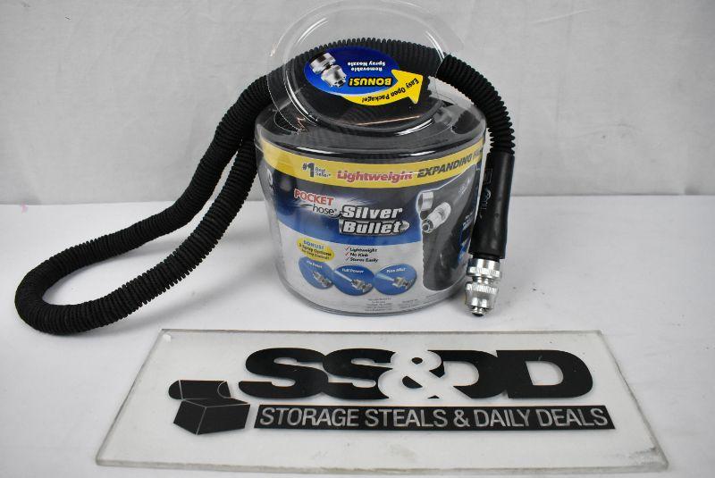 Pocket Hose Original Silver Bullet - Expandable Garden Hose That Grows with Lead-Free Aluminum Connectors - Safe Drinking. Open, Untested, Guaranteed to work