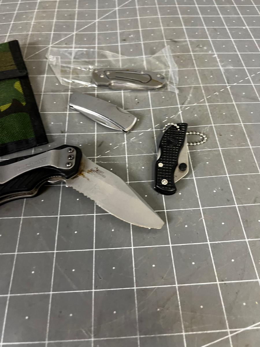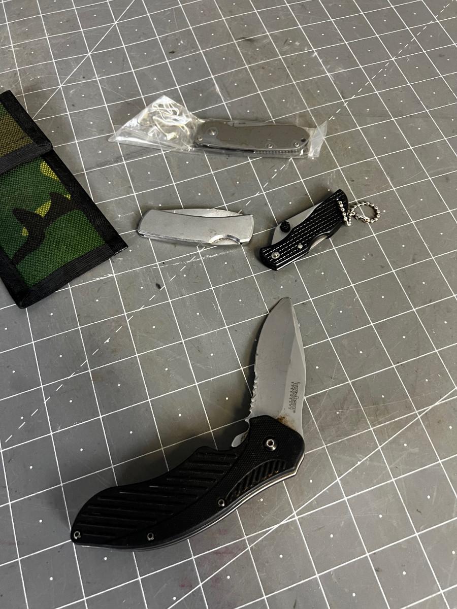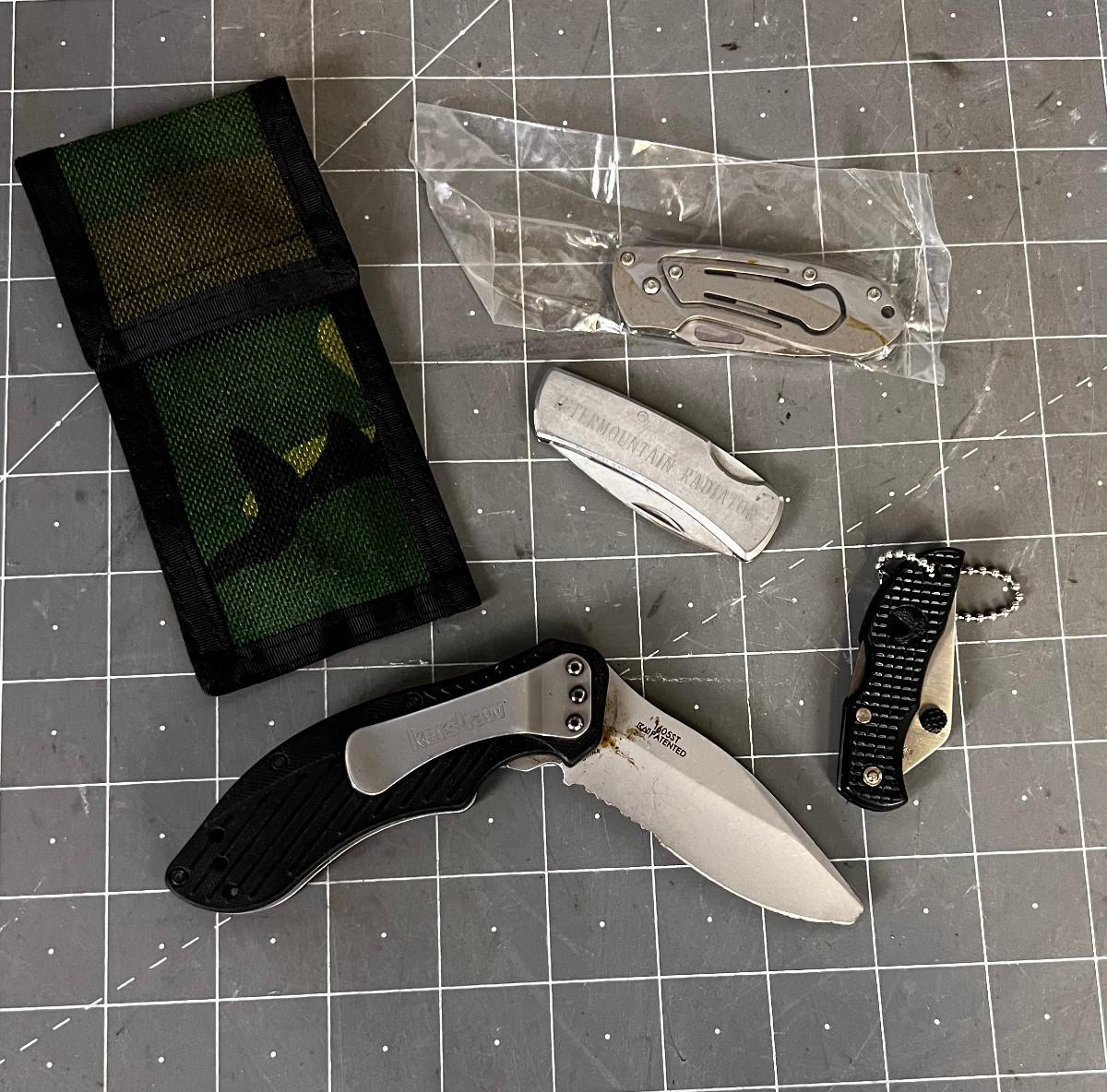 Pocket Knives (4) and 1 Sheath