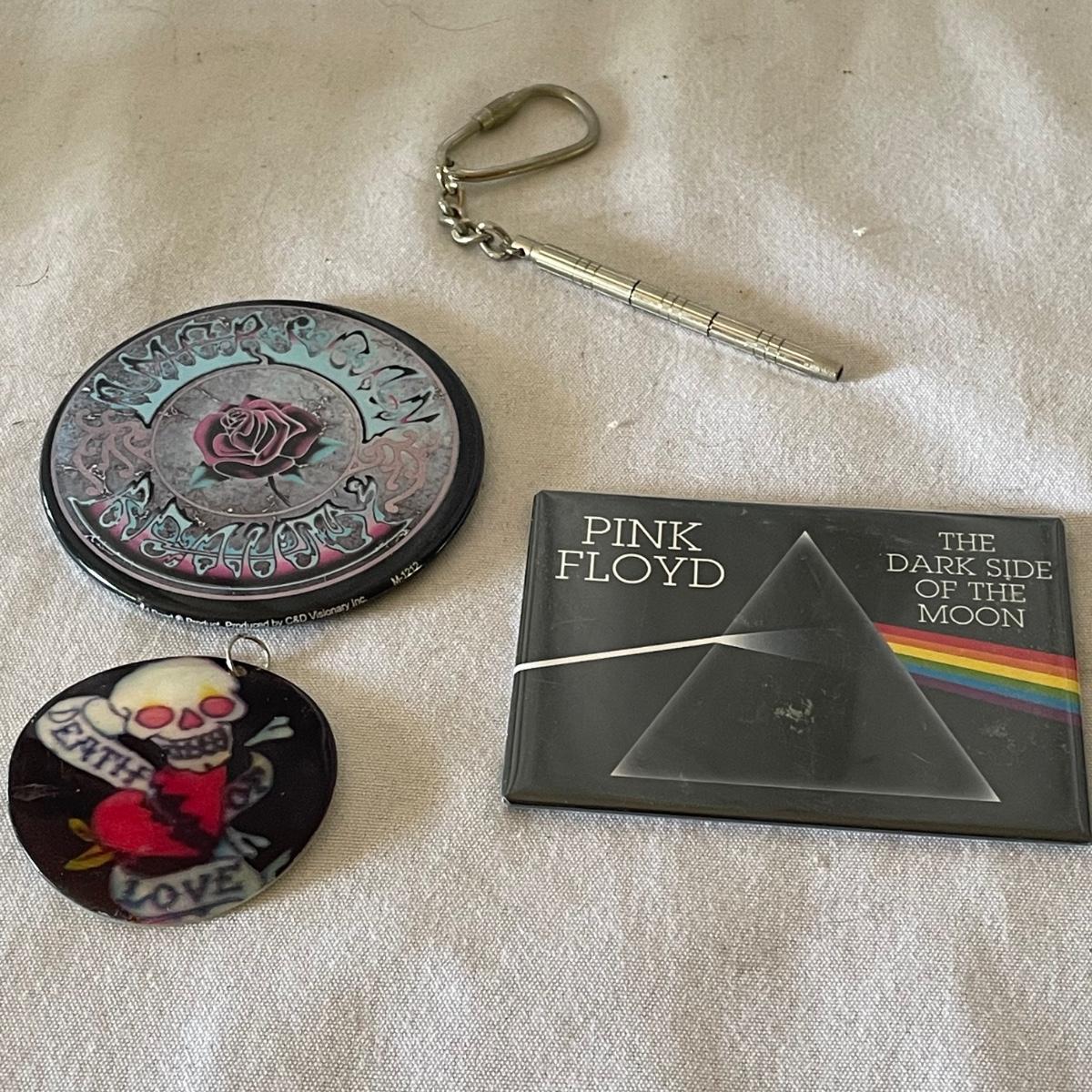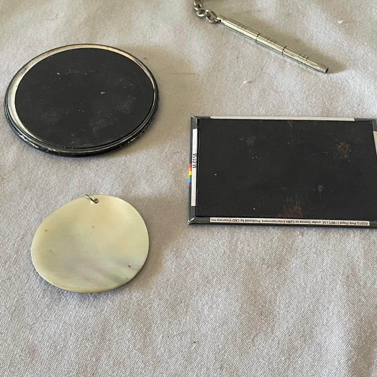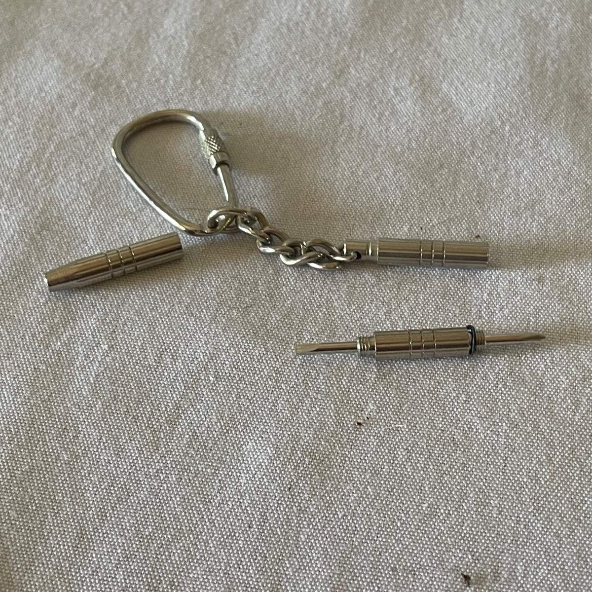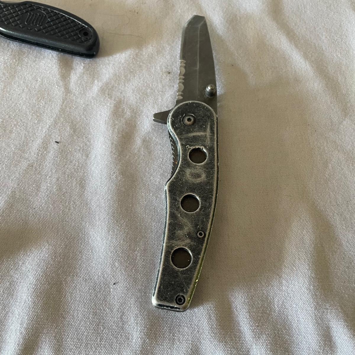 There are 3 pocket knives in this lot along with a metal cigarette case, watch, mini screwdriver and more. Watch has faux leather strap.