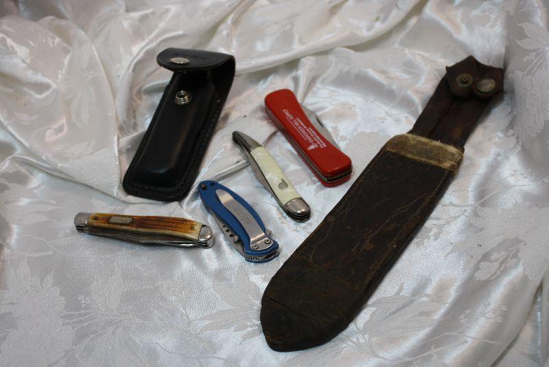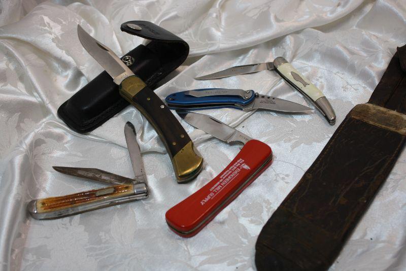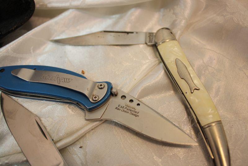 Pocket knives, sheath. Buck, Kershaw, Atlas, personalized Marble sheath.
