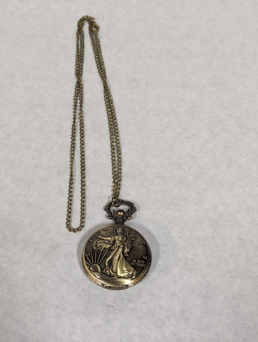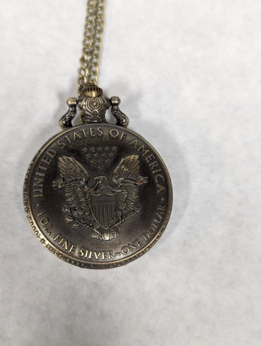 Pocket Watch Bronze Coin Liberty Walking Dollar With Chain