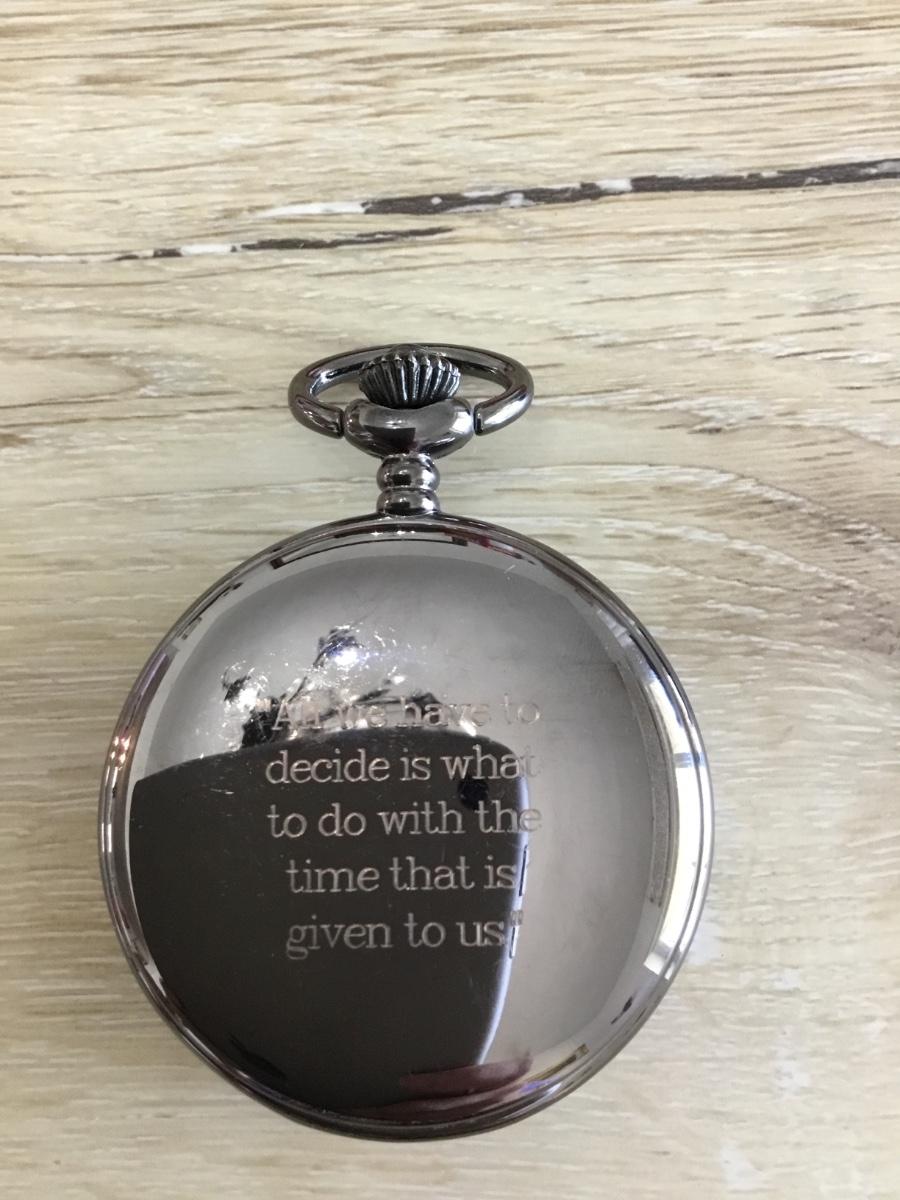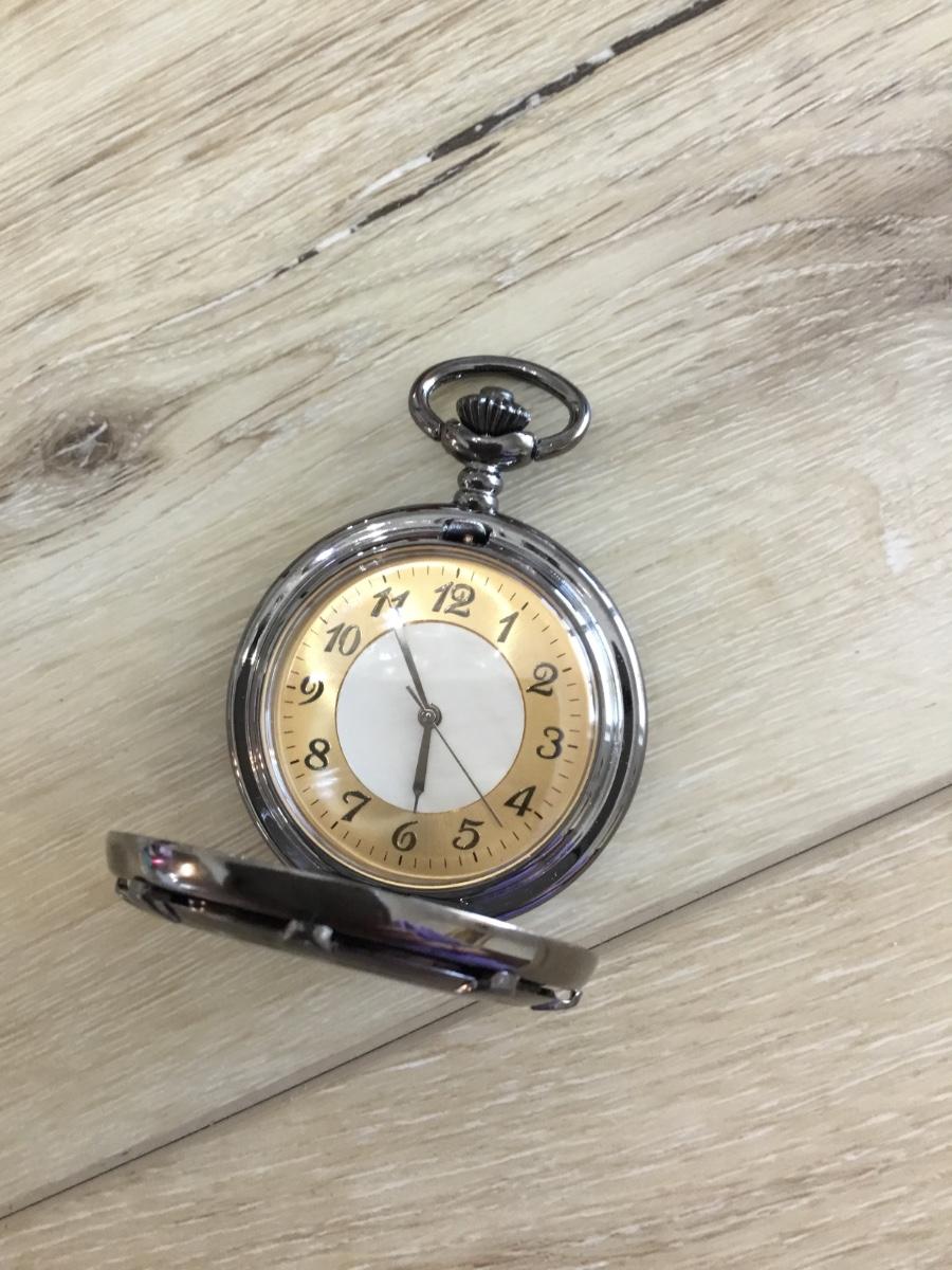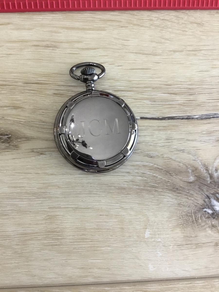 Pocket watch with initials, JCM, gun, metal, gray toned