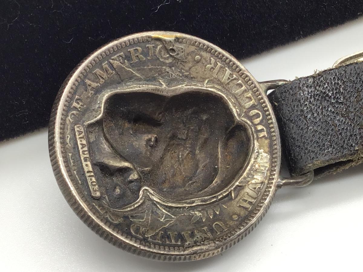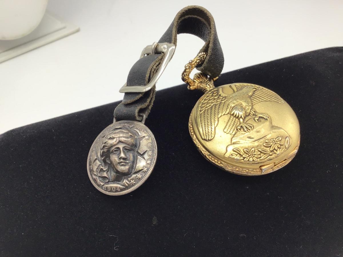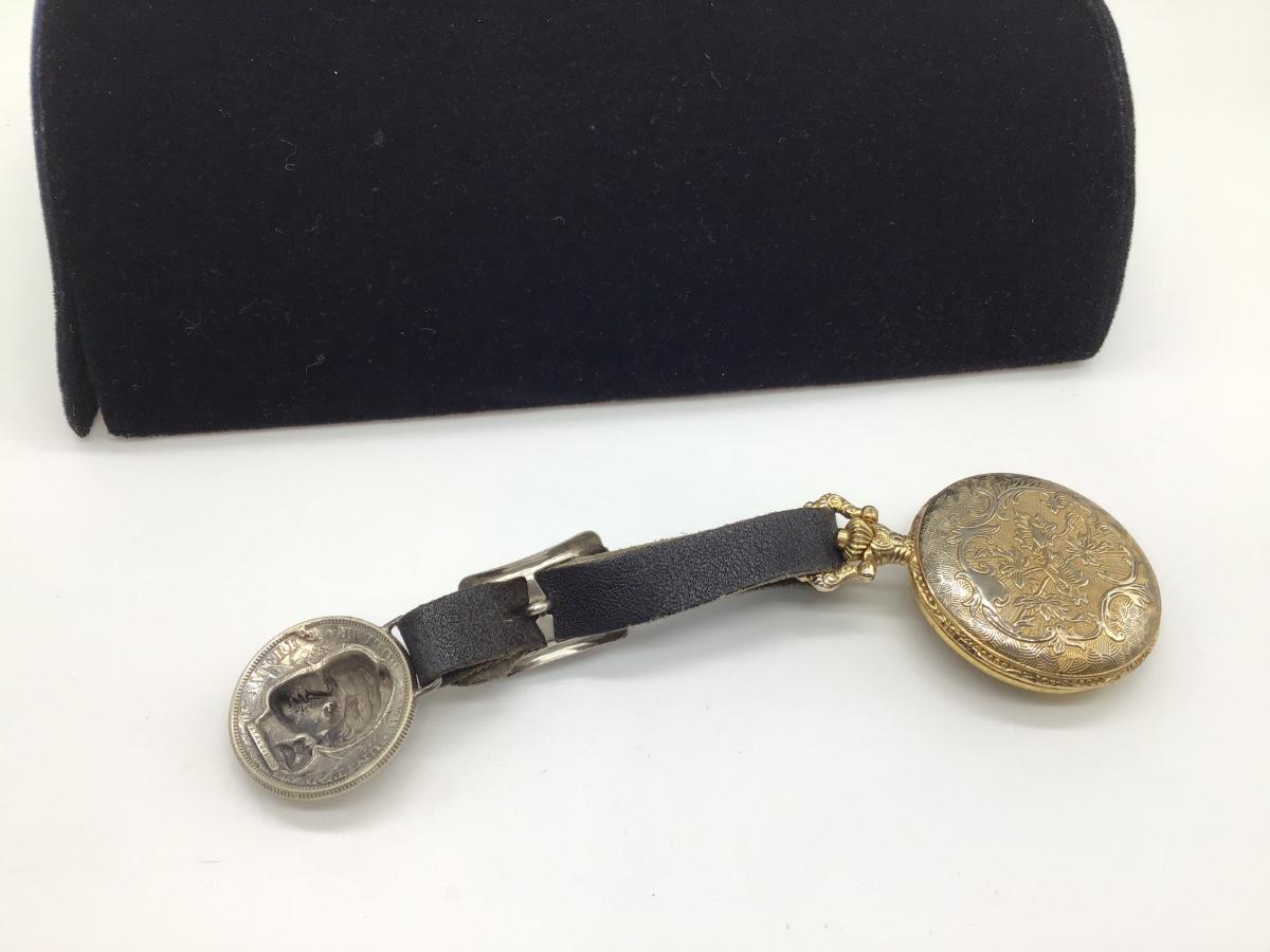 Pocket watch with leather pocket strap and pendent