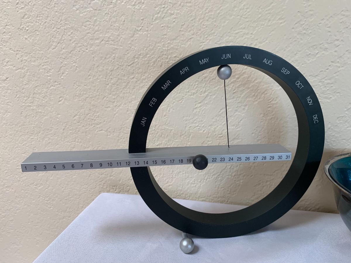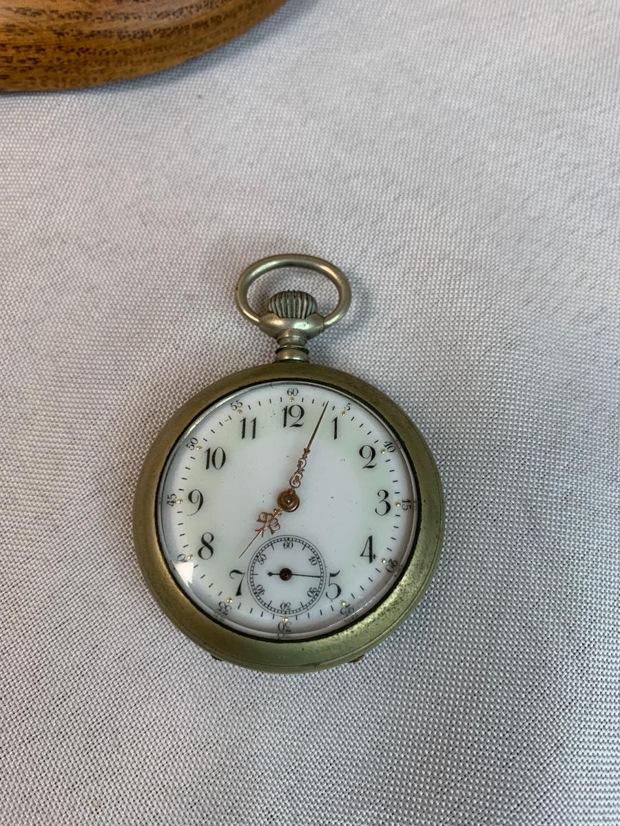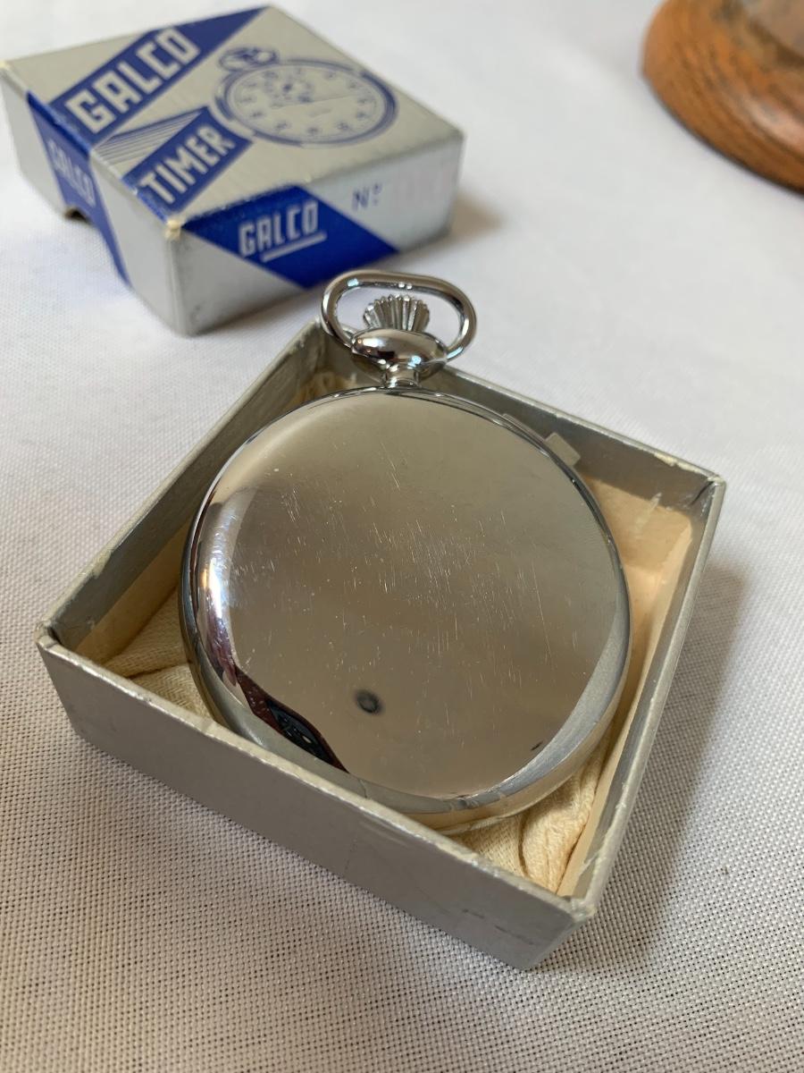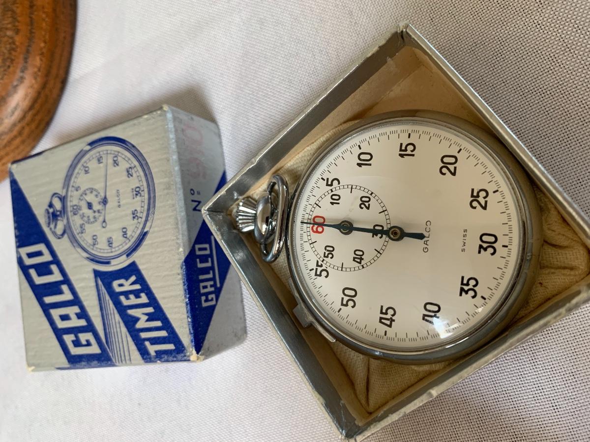 Assortment of one gold tone case pocket watch, one eternal calendar, one Gorham silver bowl with a blue glass insert *engraved*, one Eastman school of music mug made in USA and one Taylor humidity gage. All in good condition