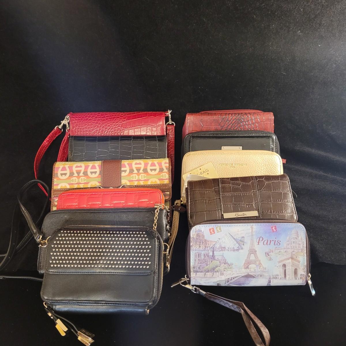 A variety of 11 pocketbooks and wallets make up this lot, including Adrienne Vitadini, Kenneth Cole and more. Many are new with tags. Shipping available.
