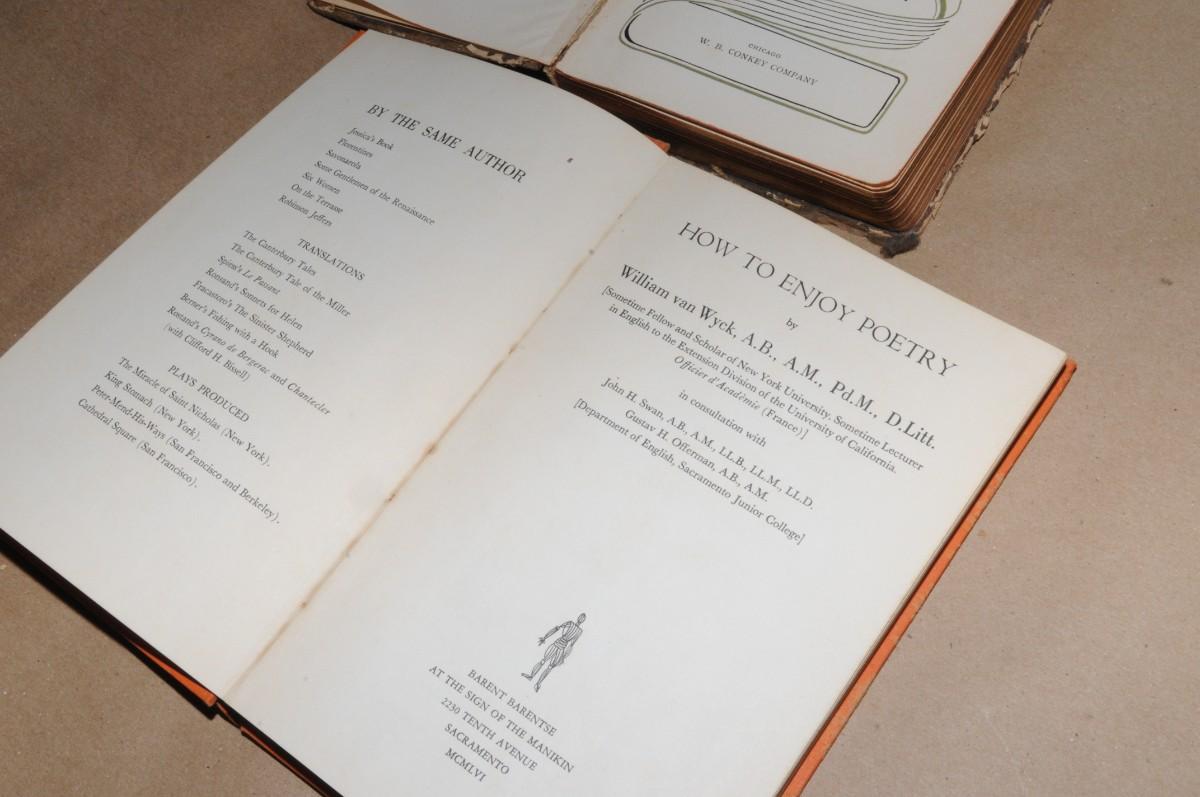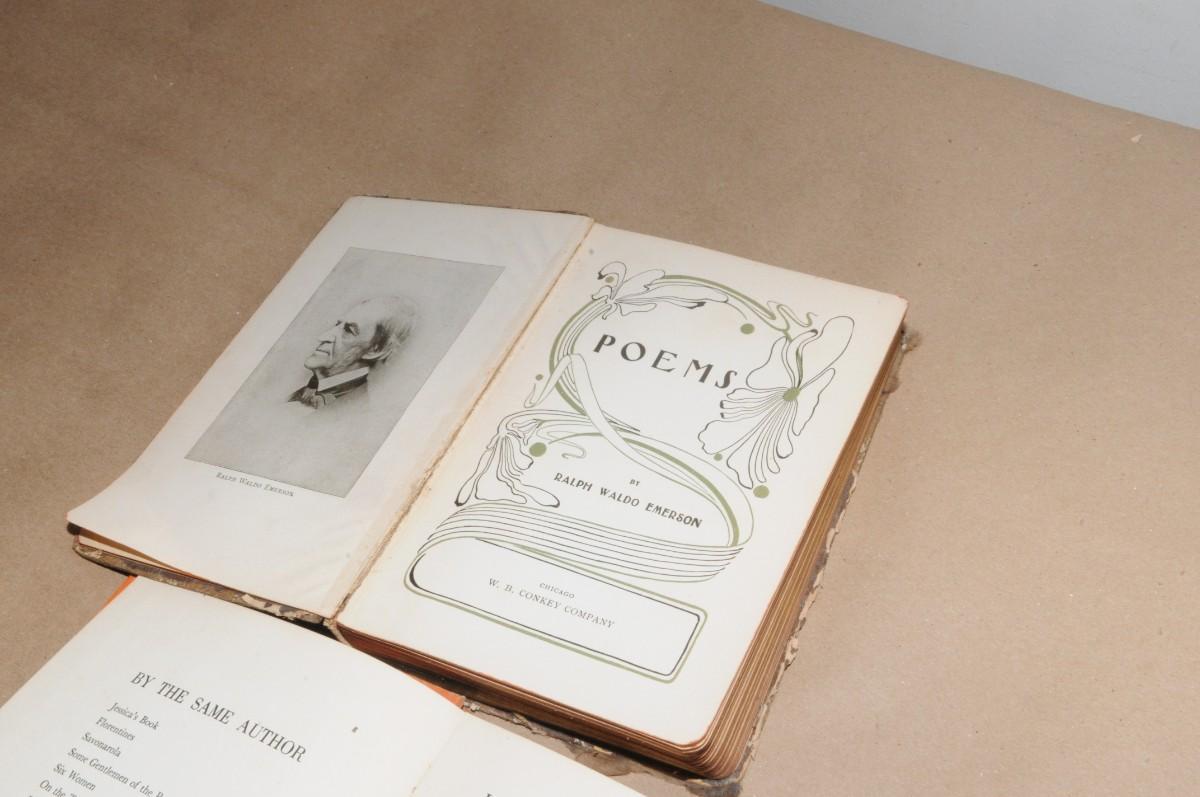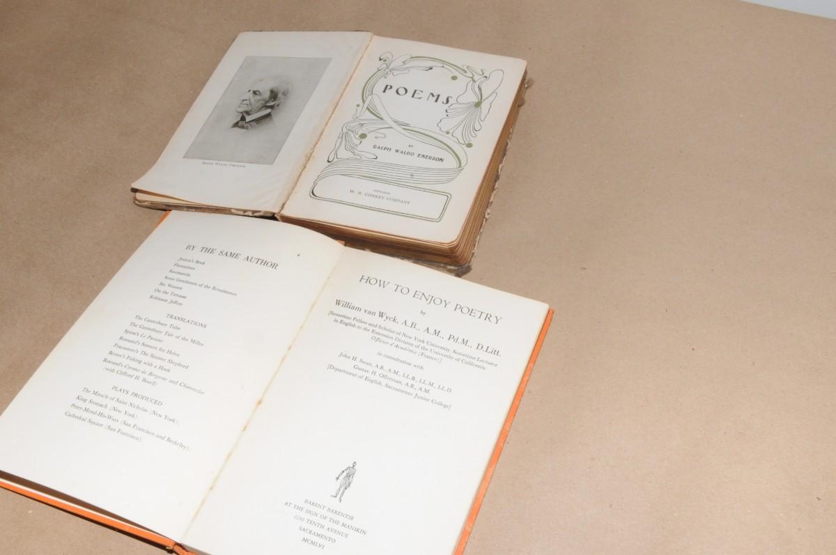 Poems by Ralph Waldo Emerson, no date, published by WB Conkey Co. How to enjoy poetry by William van Wyck, published in 1956.