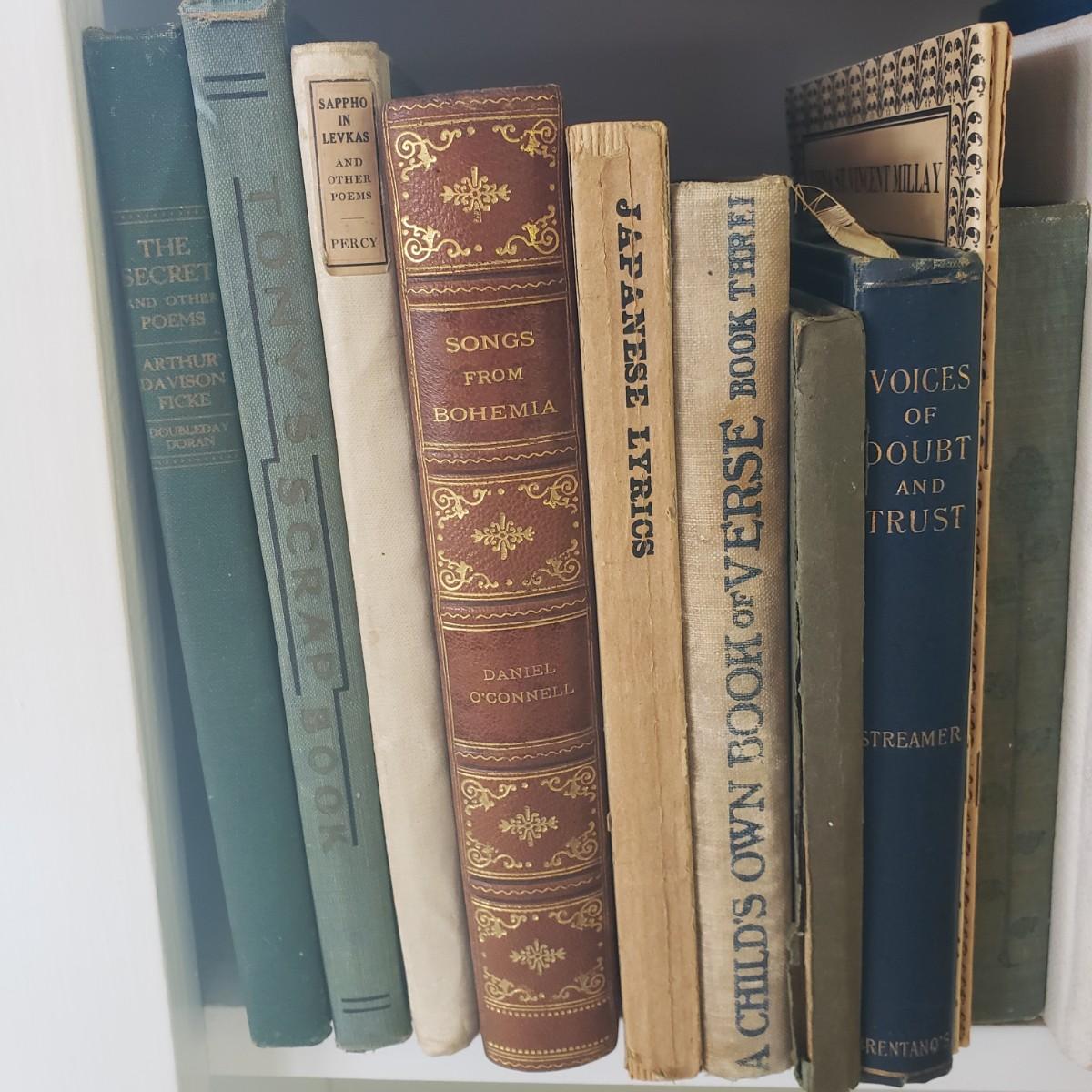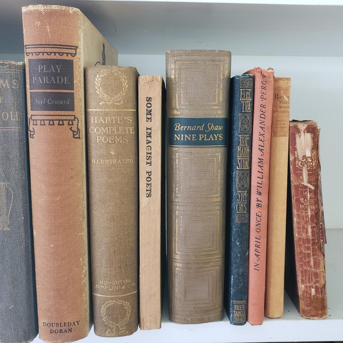 This lot contains a variety of antique and vintage books about poetry and plays. See pictures for titles, authors and copyright. The first book pictured is the most worn of them all, otherwise, the bindings are in good shape, especially for their age.