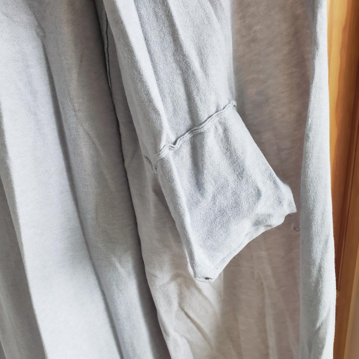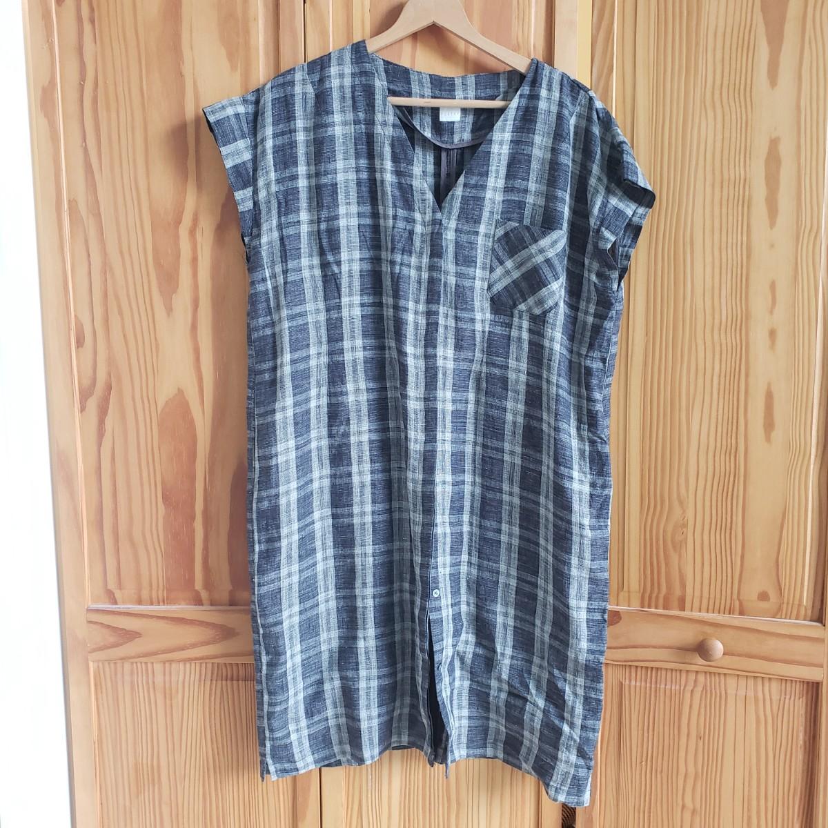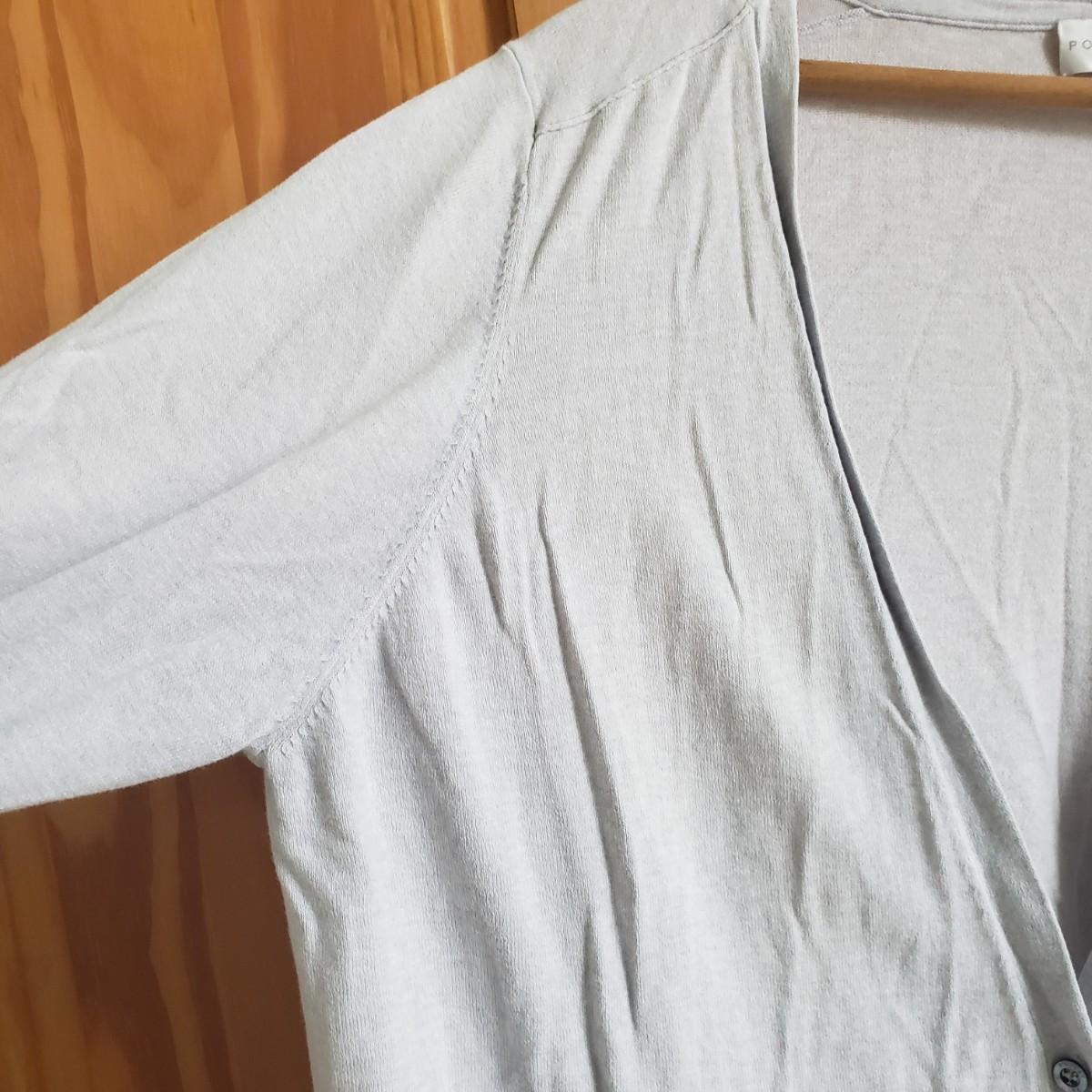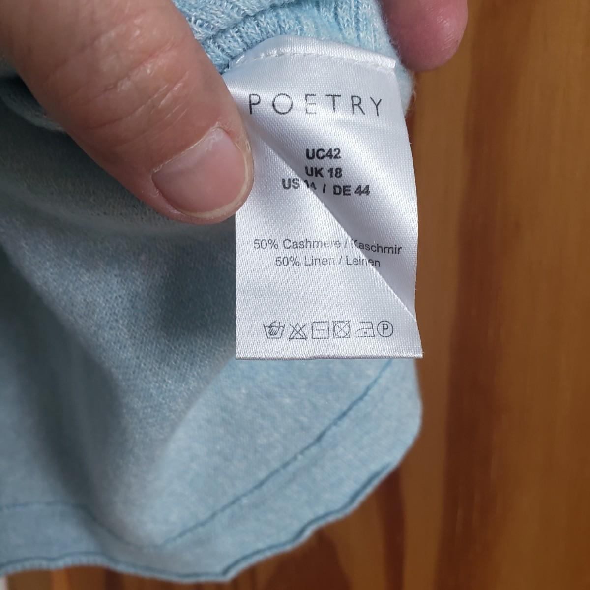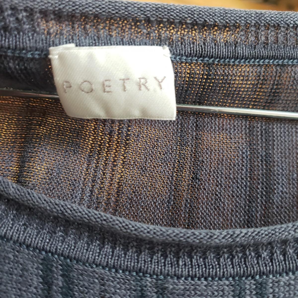 This lot contains four pieces from Poetry. There are two light weight, short sleeve shirts, one button down light weight grey sweater, it has pockets! Lastly, is a linen dress. See pictures for sizes and material.