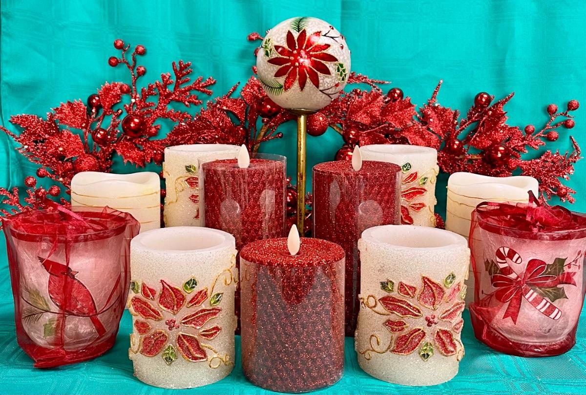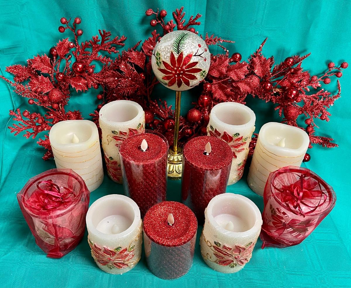 Poinsettia Decor Lot - Holiday Christmas Candles, Trim, etc