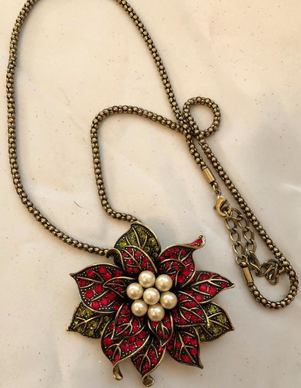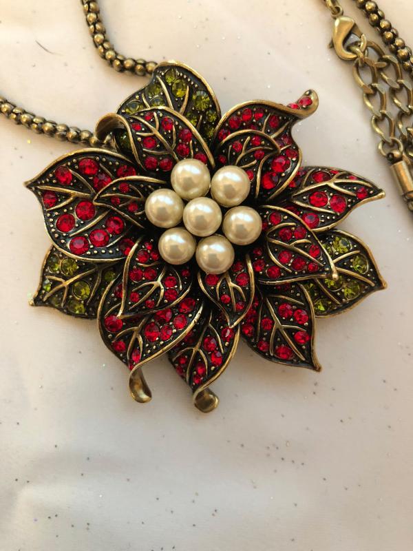 Poinsettia Holiday Christmas Necklace Costume Jewels & Pearls