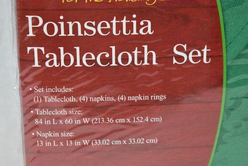 Poinsettia Tablecloth Sets, Qty 2: Green Tablecloths with Napkins & Napkin Rings - New