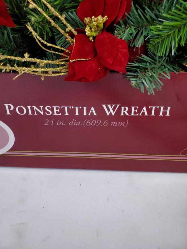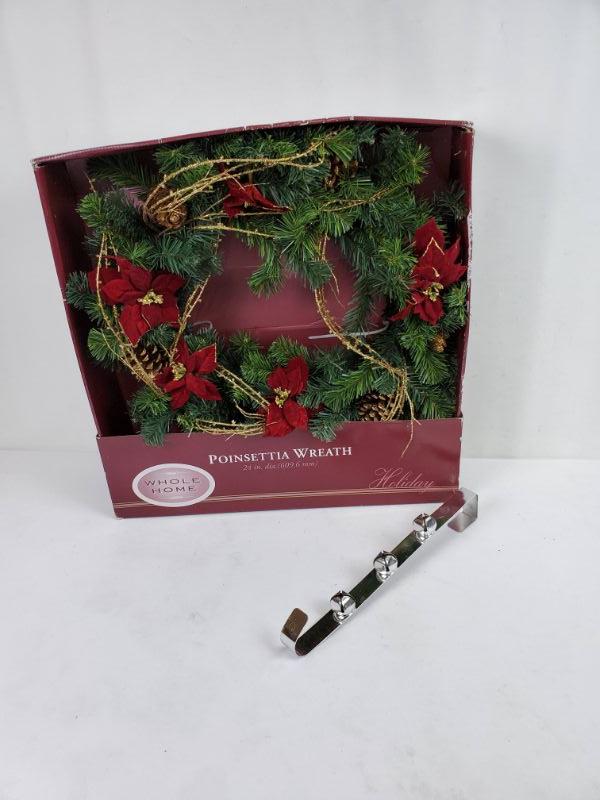 Poinsettia Wreath (24 in. Diameter) & Jingle Bell Wreath Holder