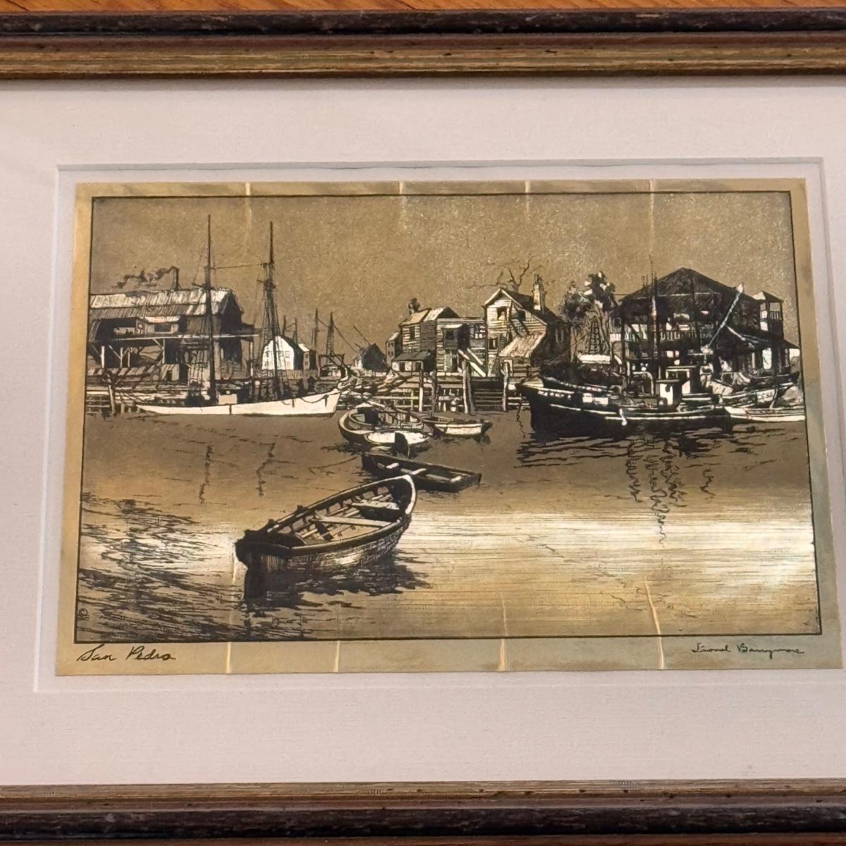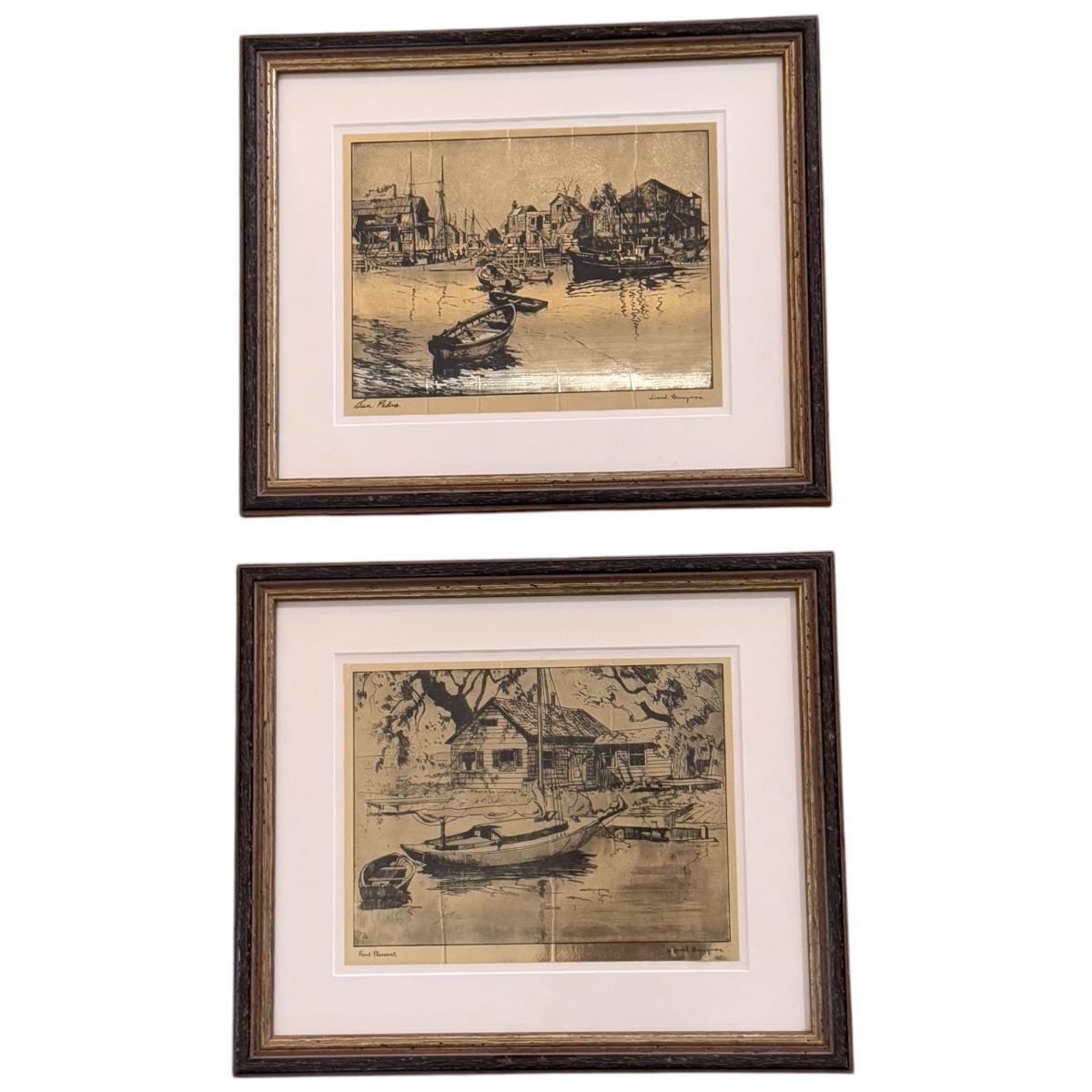 “Point Pleasant” and “San Pedro” Gold Foil Etching Prints by Lionel Barrymore (LR-DZ)