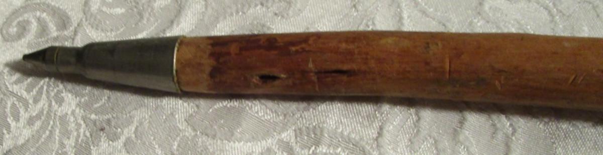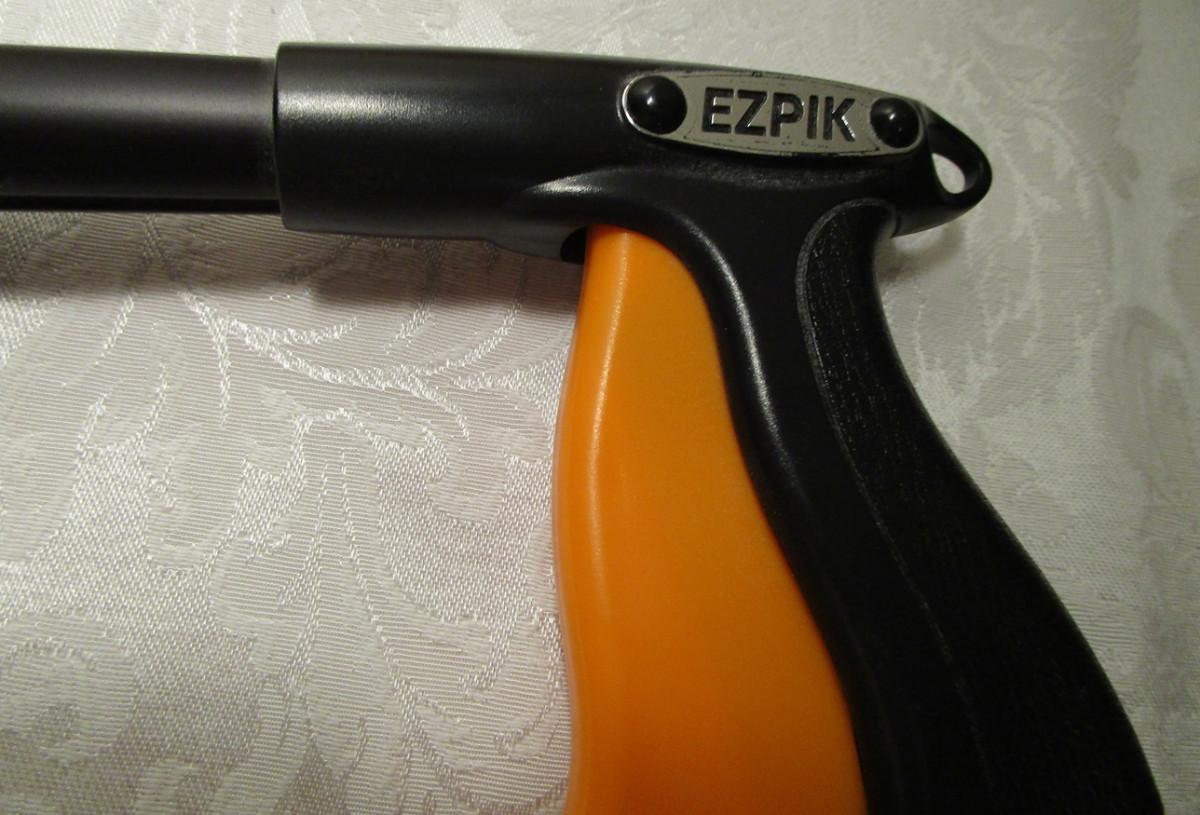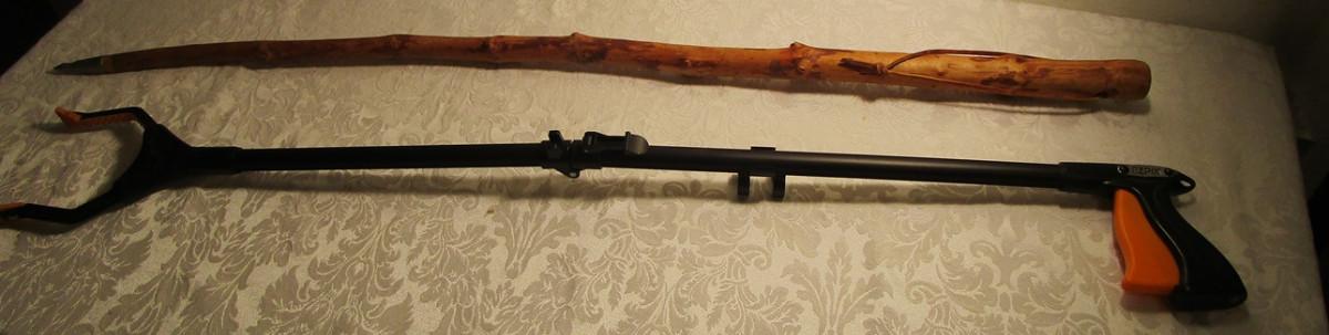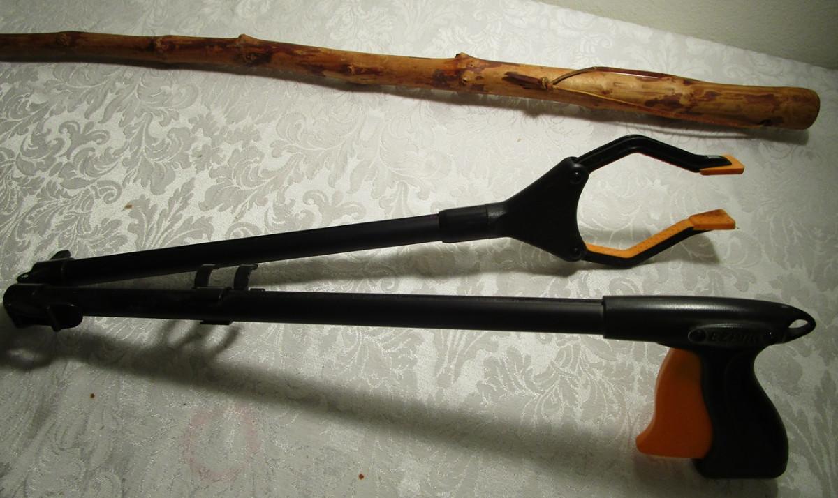 Pointed wood walking stick, EZ pik grabber