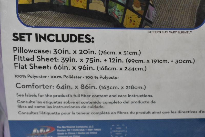 Pokemon 4 Piece Twin Bed in a Bag Bedding Set: Includes Comforter & Sheet Set - New