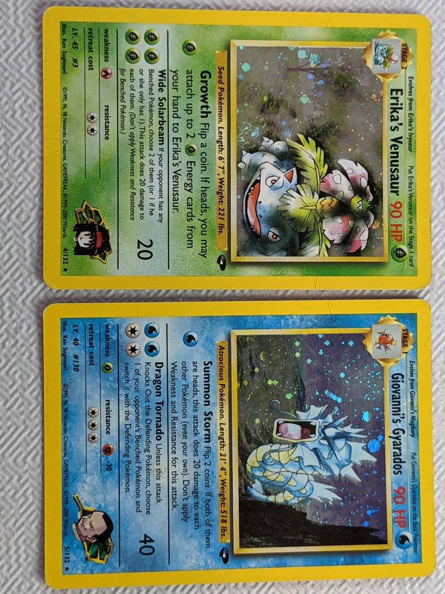 Pokemon card: Giovanni's Gyarados 5/132 and Erika's Venusaur 4/132