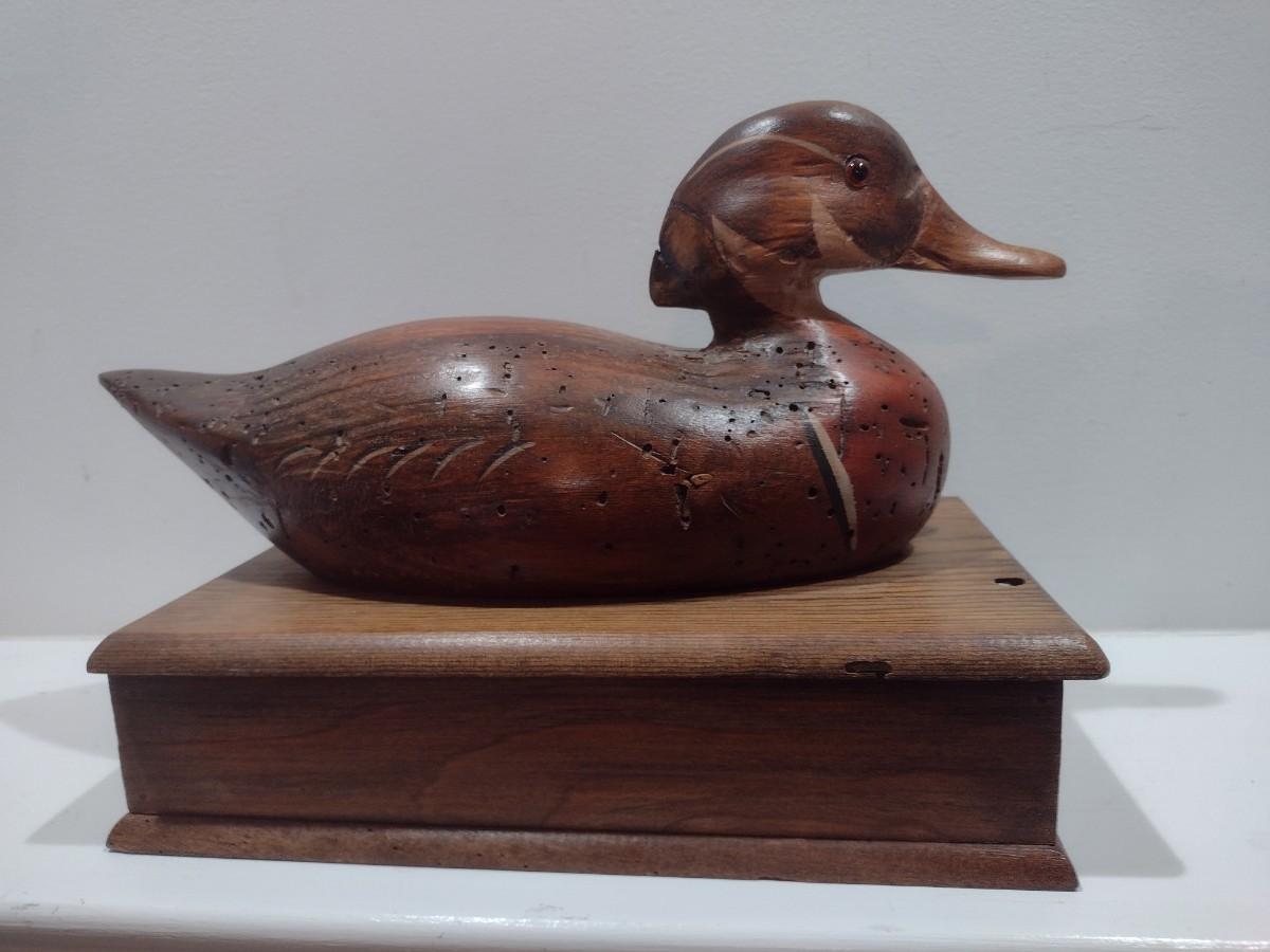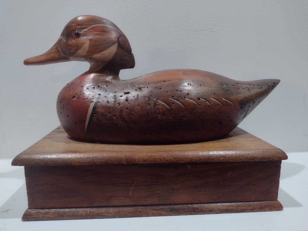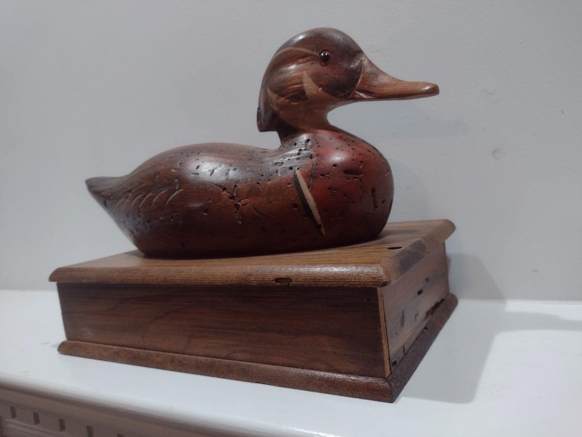 Vintage Carved Duck on Hand Crafted Wood Poker Set Box