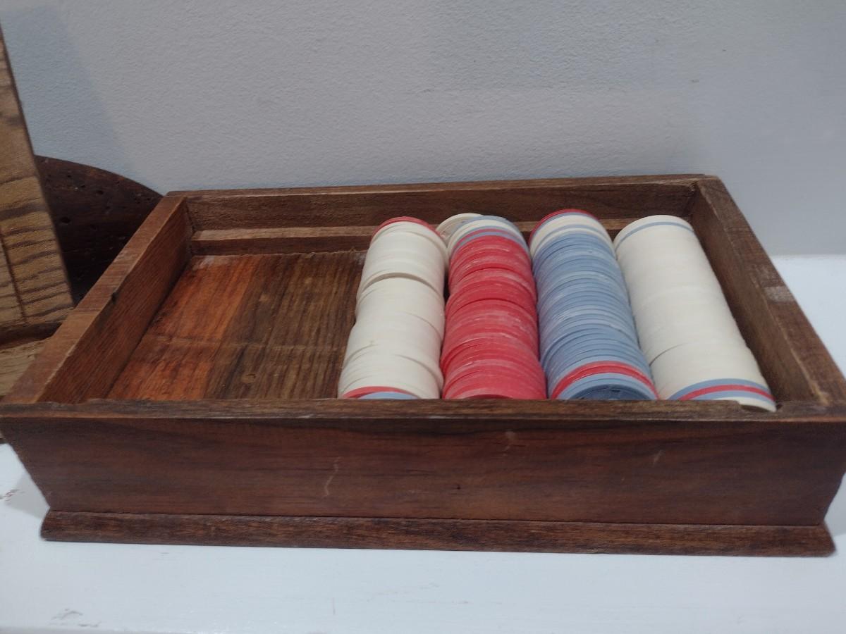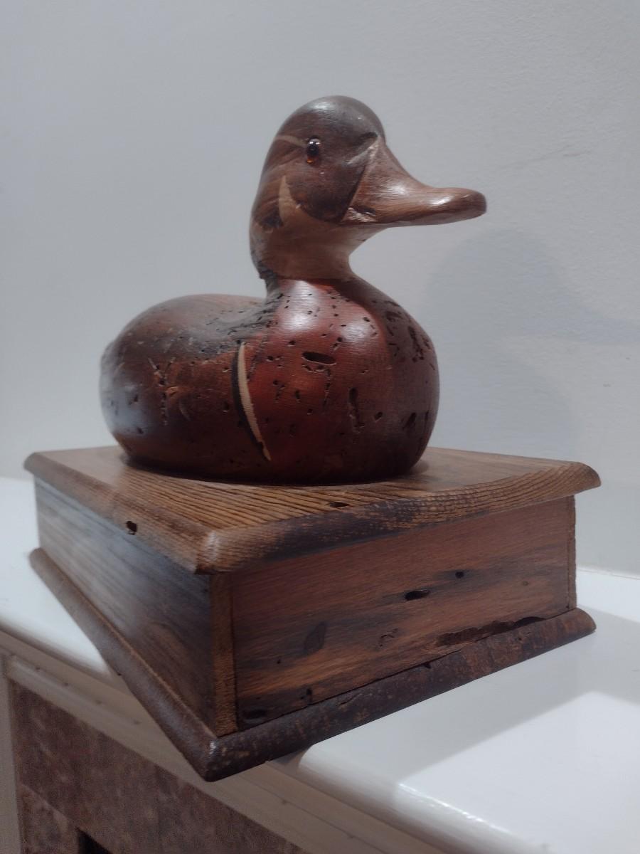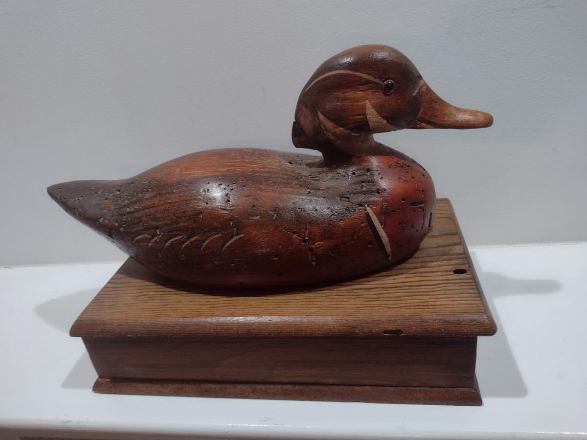Vintage Carved Duck on Hand Crafted Wood Poker Set Box