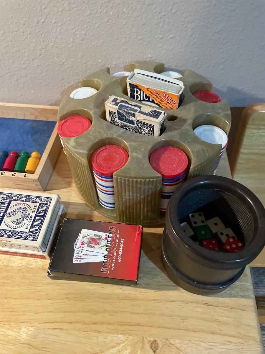 Poker chips, cards and game