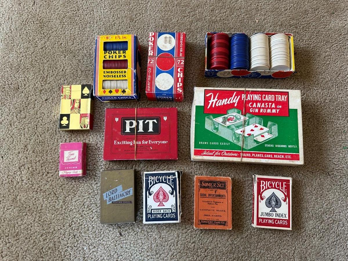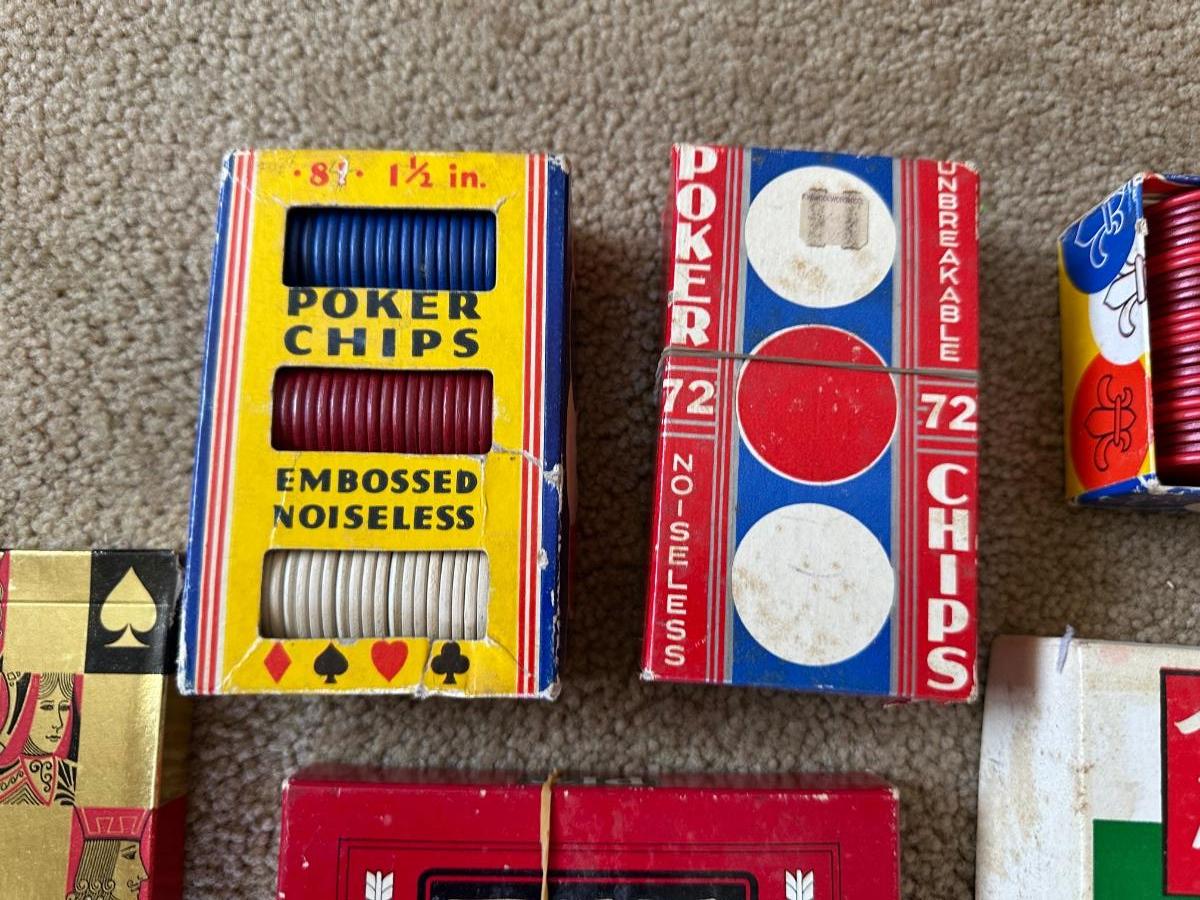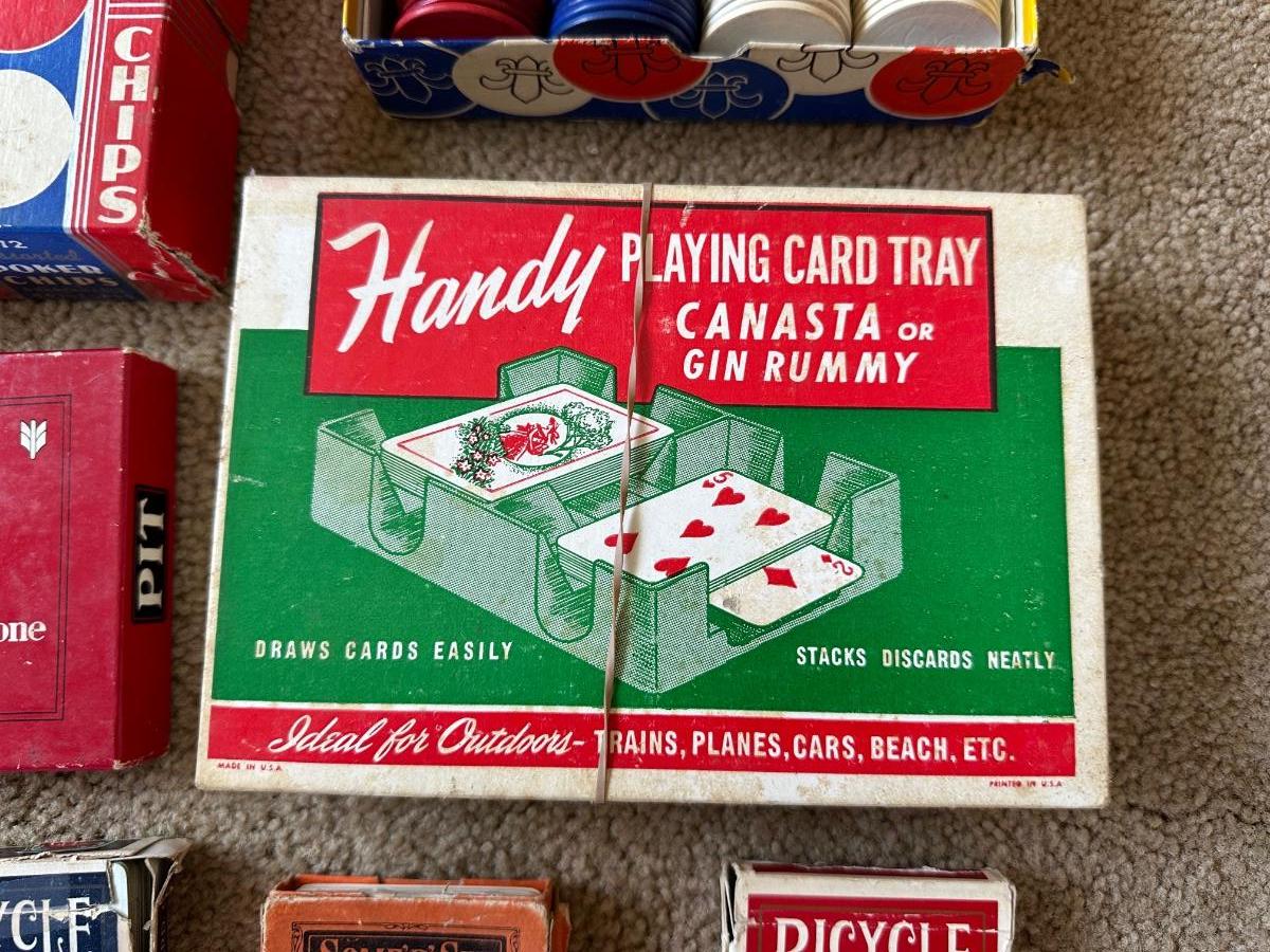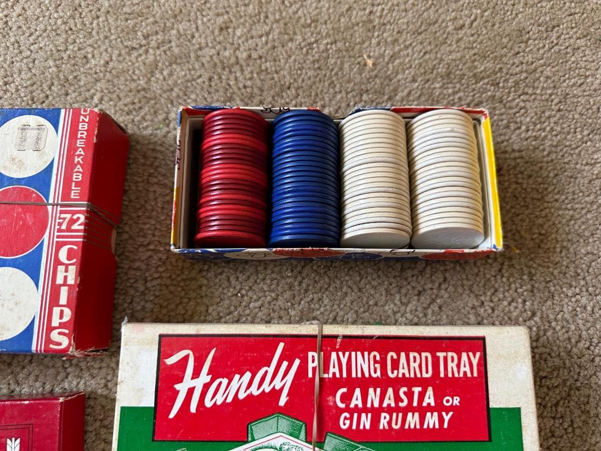 POKER CHIPS, DECKS OF CARDS, HANDY CARD TRAY AND MORE