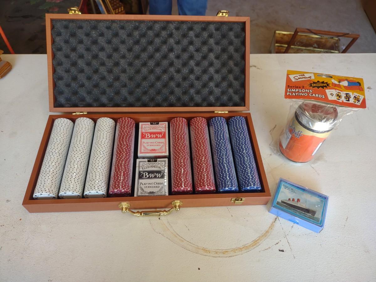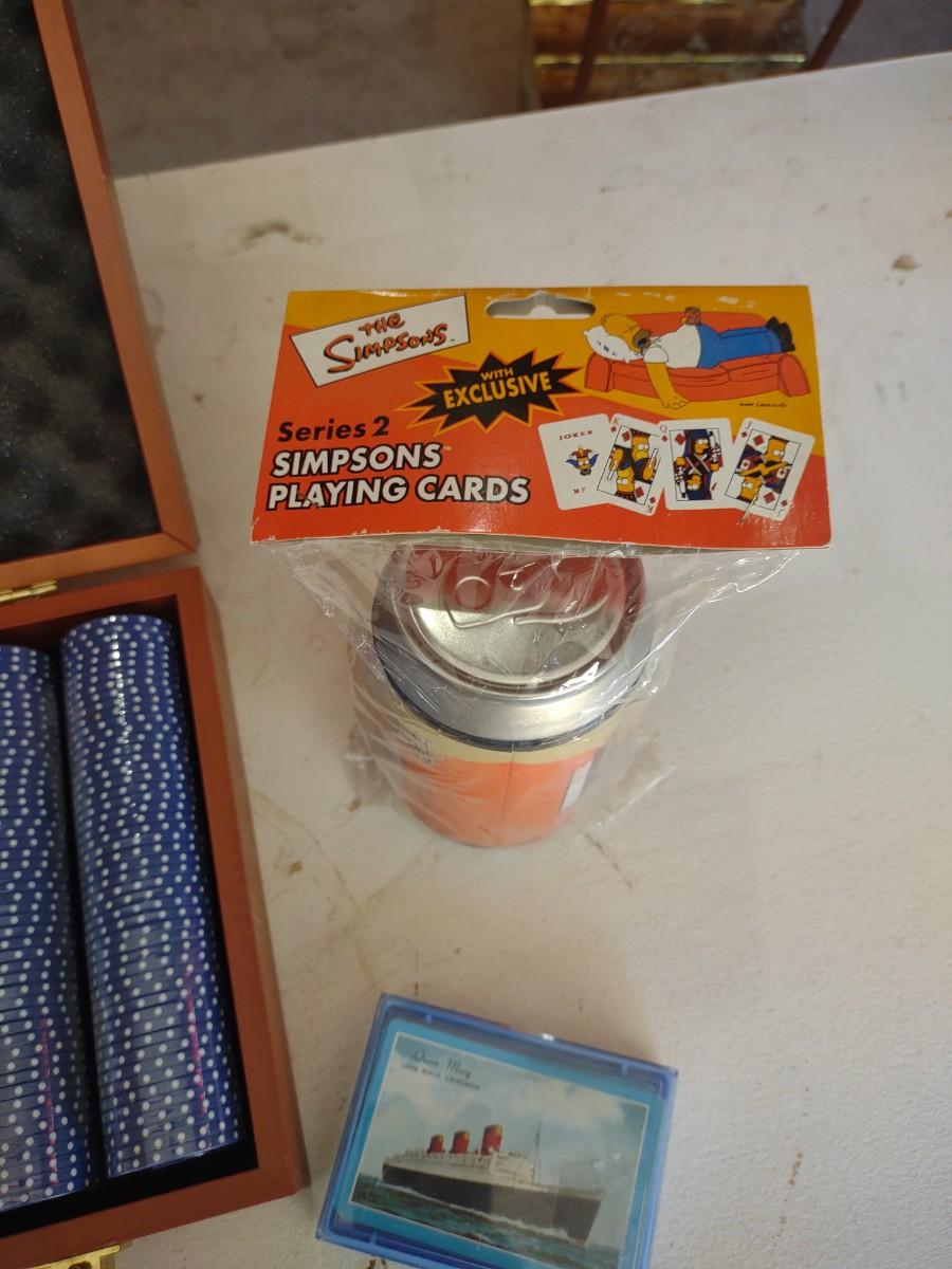 POKER CHIPS AND CARDS IN A CARRY CASE PLUS DUFF BEER THE SIMPSON PLAYING CARD