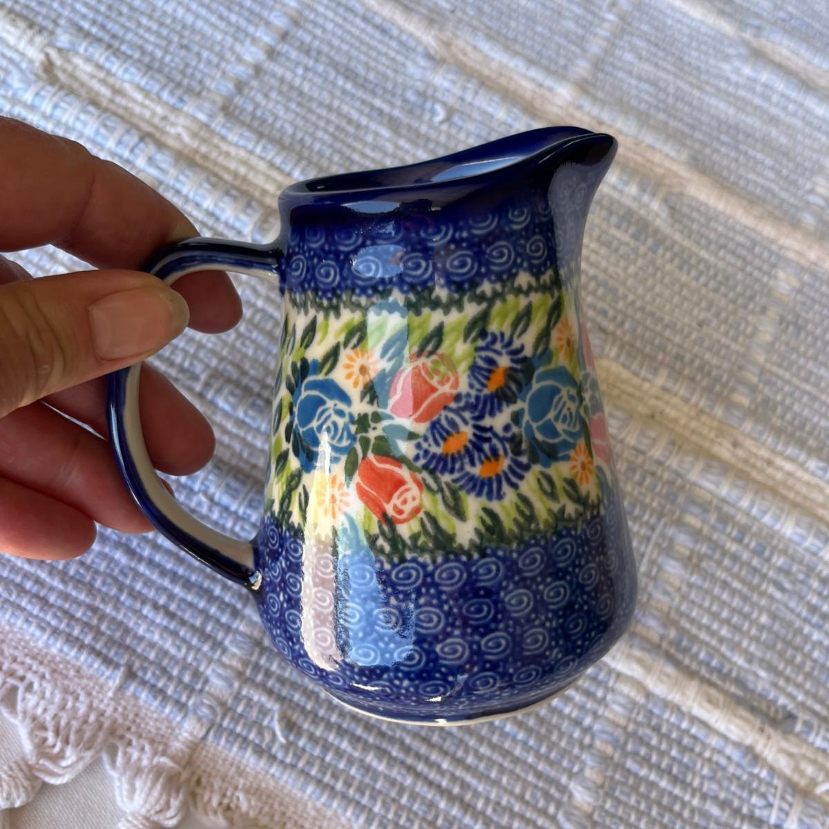 Poland Blue & White Pottery Floral Creamer