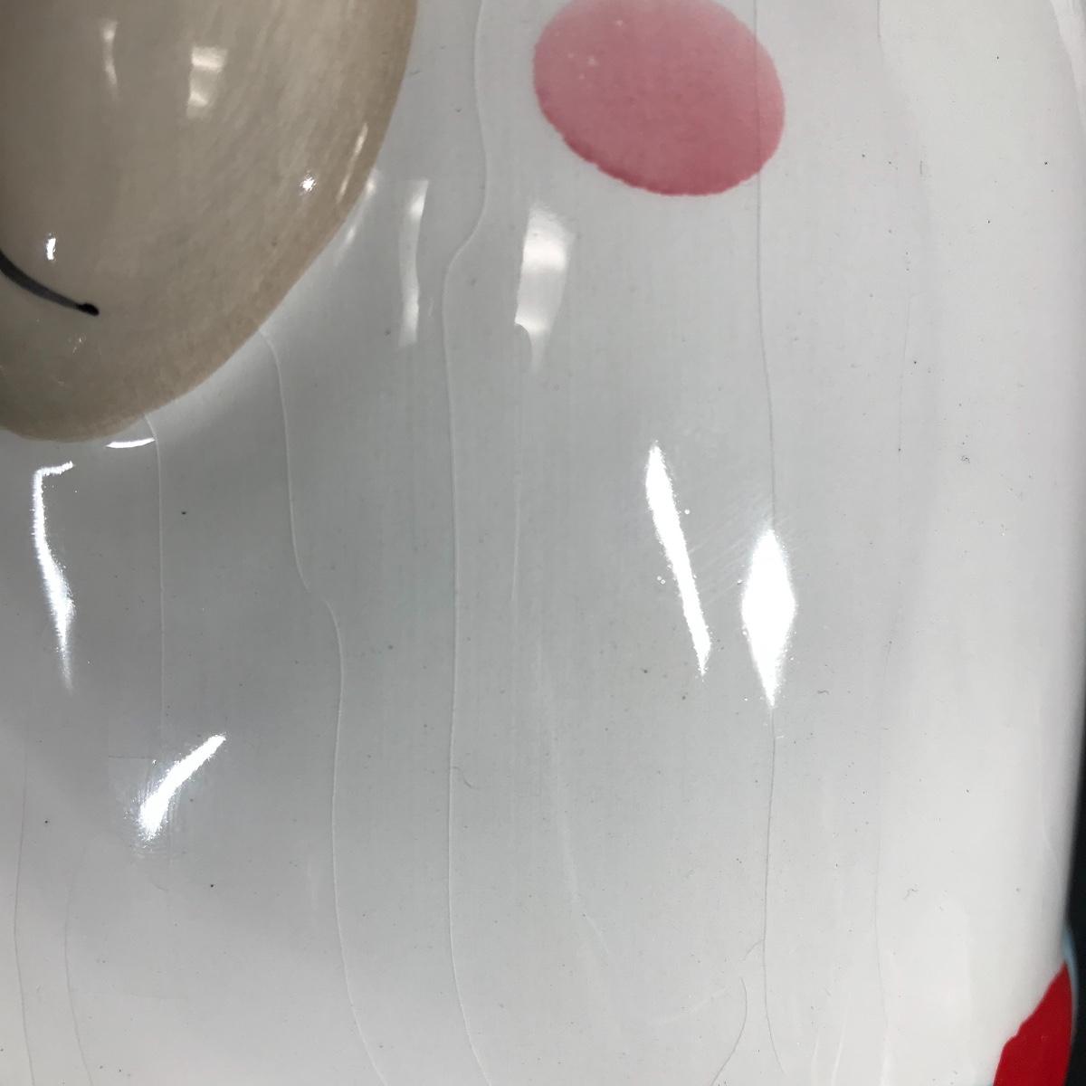 Up for auction is a cookie jar made by Connections. Overall in decent condition with some crazing on the front. See pictures.