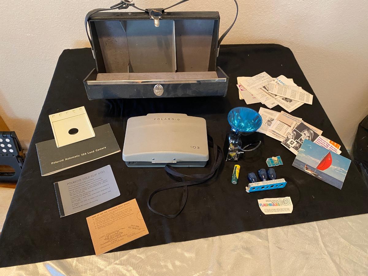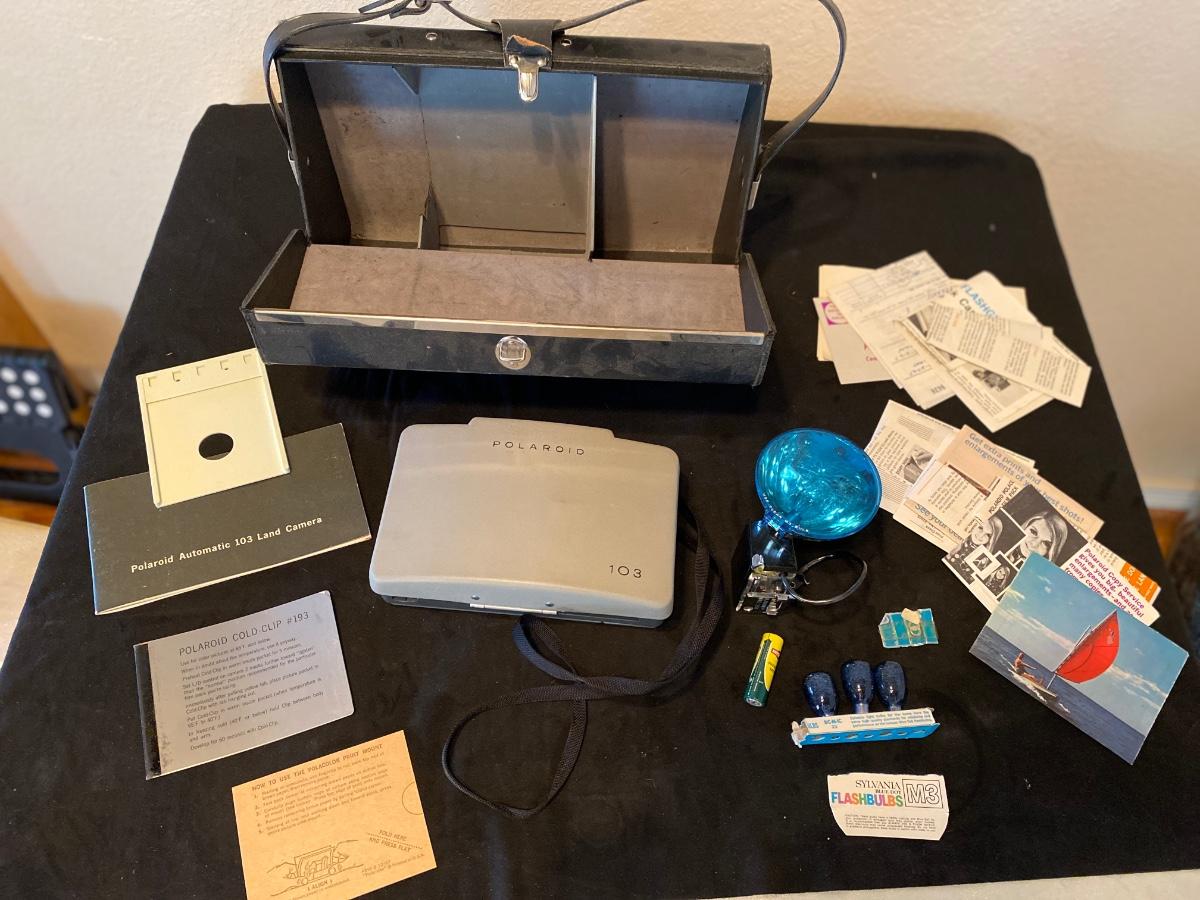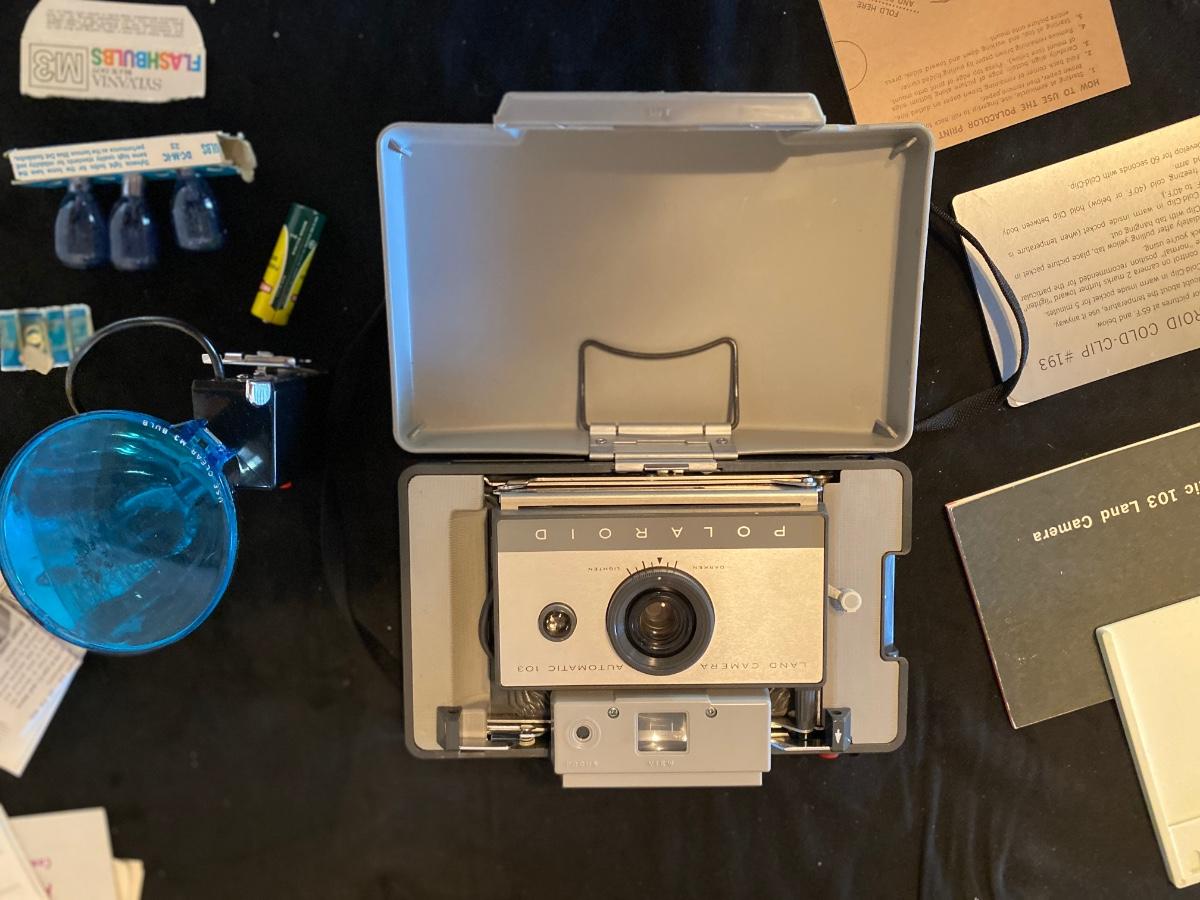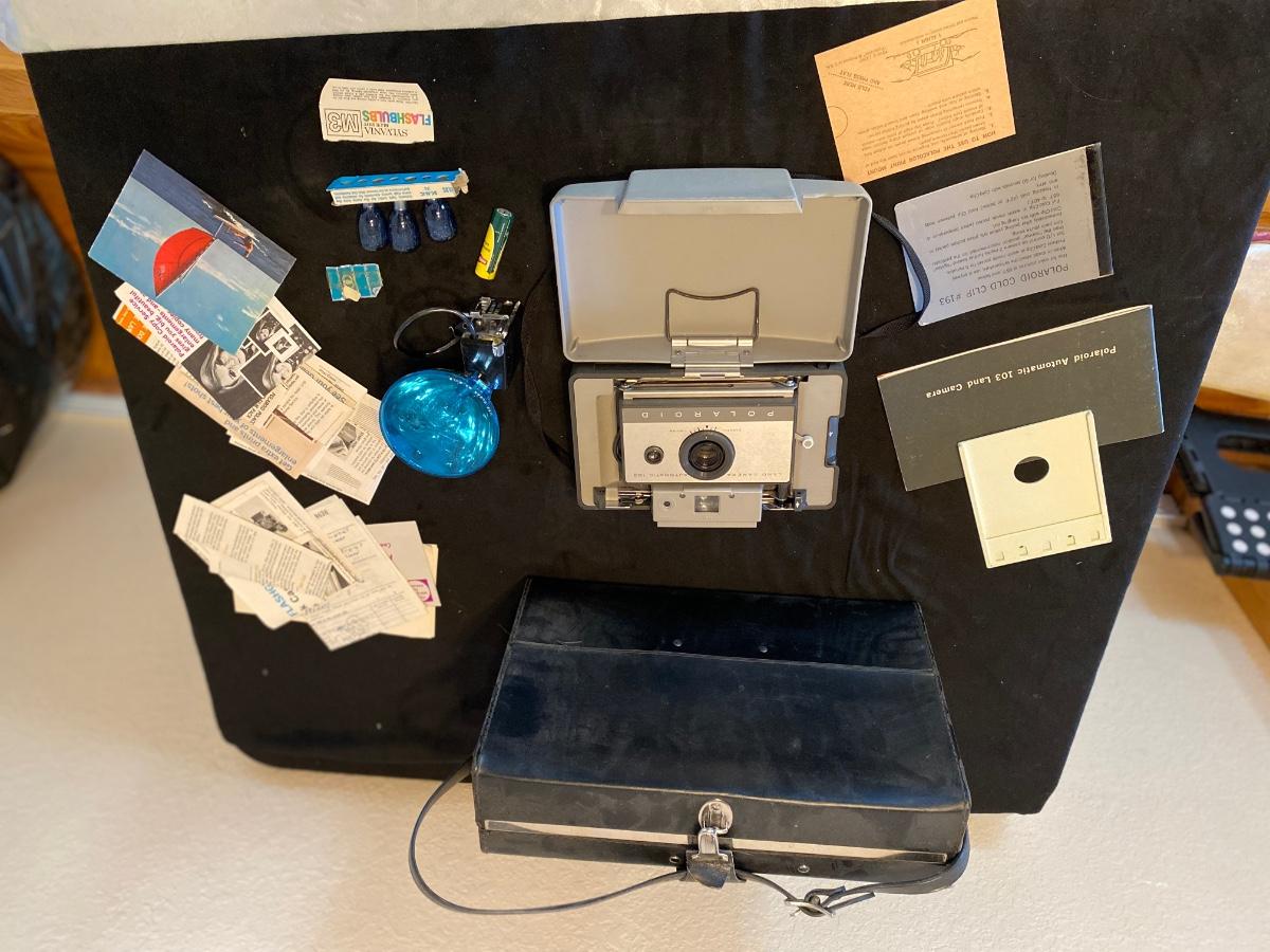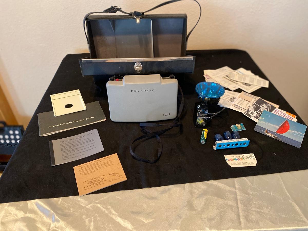 POLAROID AUTOMATIC 103 CAMERA AND ALL OF ITS ACCESSORIES
