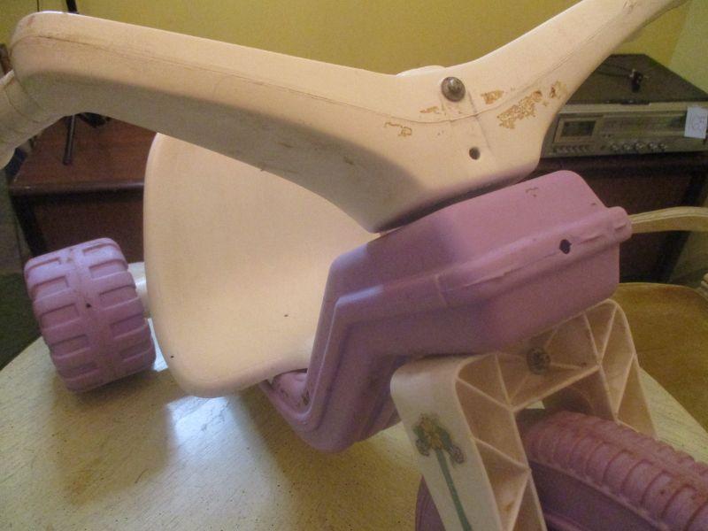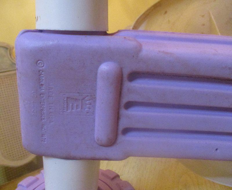 What is cool about this is that it is from a "local" manufacturer - Carolina Enterprises. This company was based out of North Carolina and the copyright on this purple big wheel is 1972. Who's ready to take it for a spin?