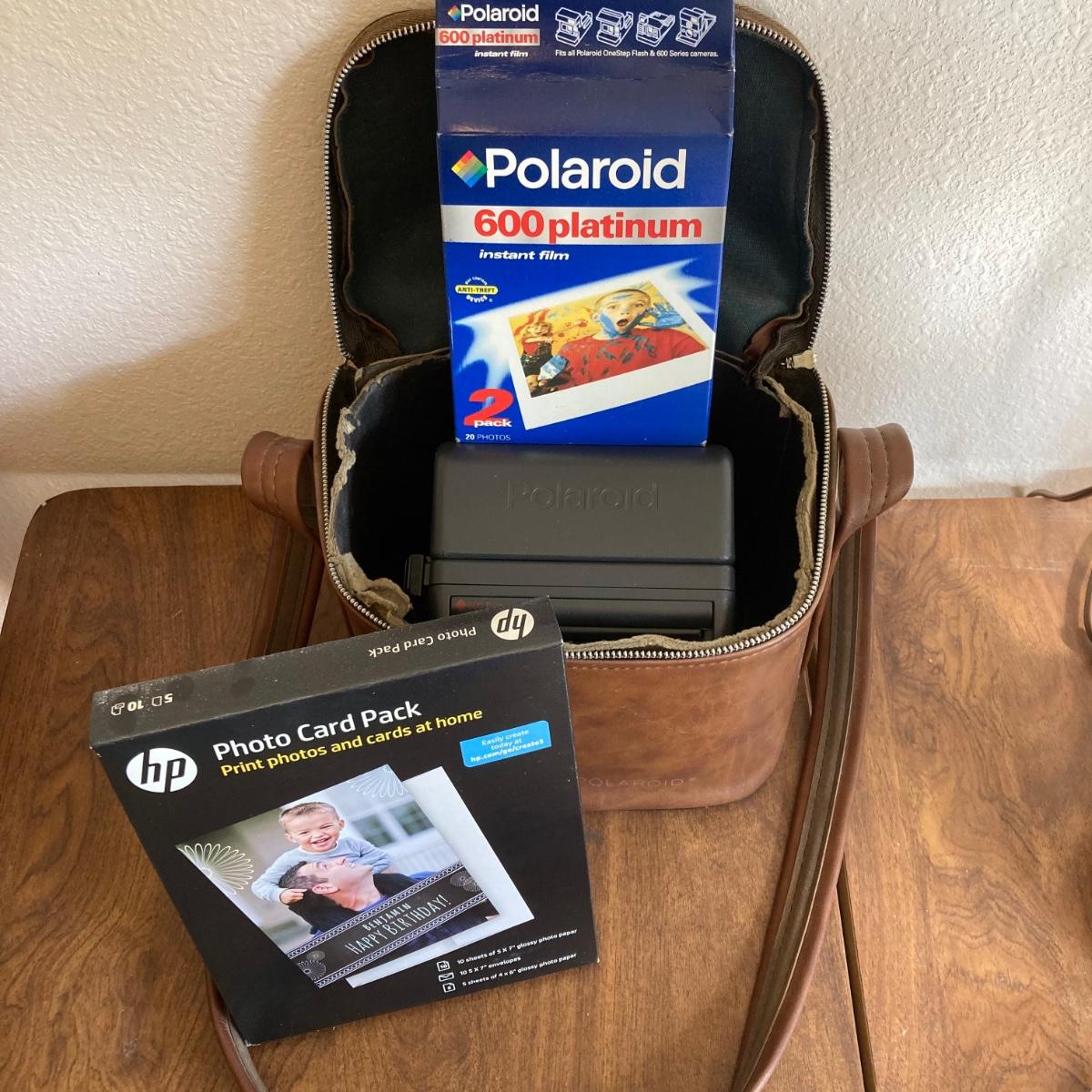 Polaroid Instant Camera 600 Film with one box of 10 600 platinum photos and a case.
