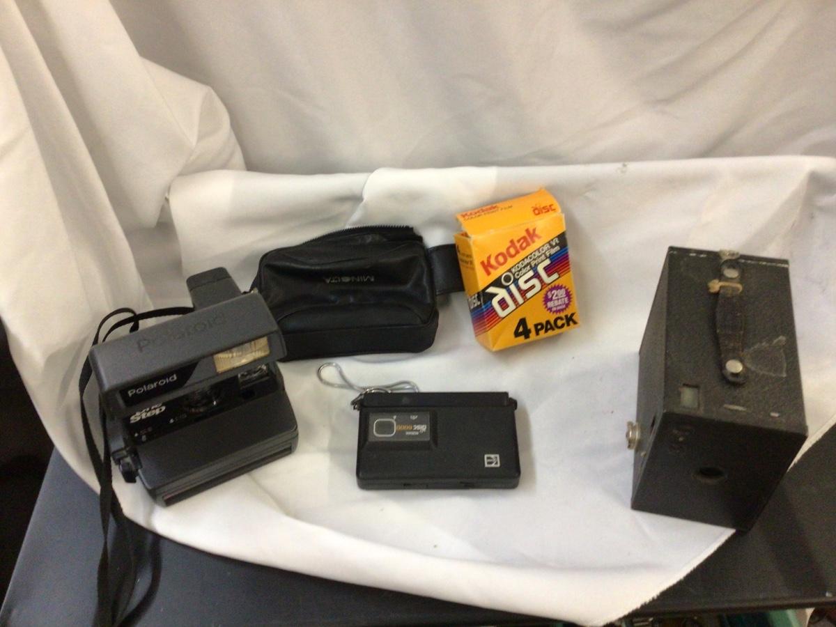 Polaroid, Kodak Disc With One Disc Film, and Box Cameras