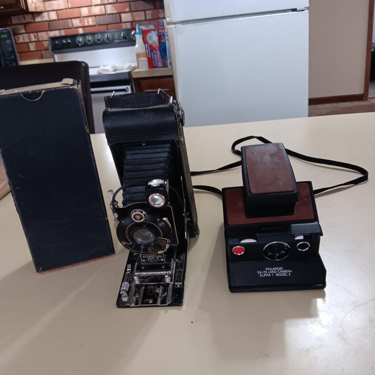POLAROID SX-70 LAND CAMERA ALPHA 1 MODEL 2 AND KODAK NO 1A SERIES III CAMERA WITH ORIGINAL BOX