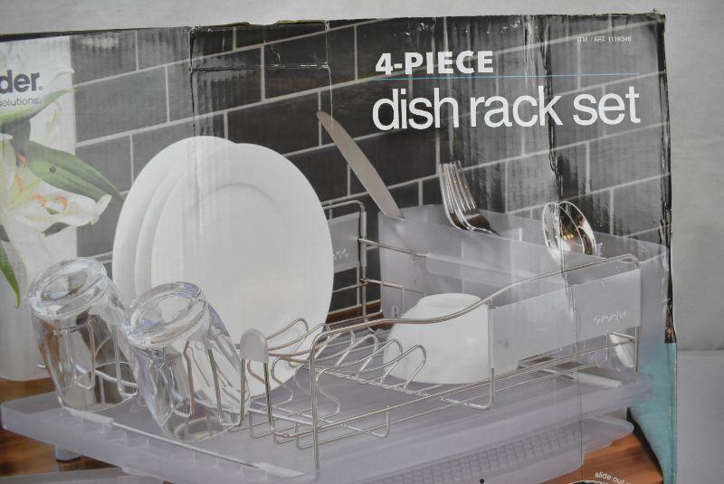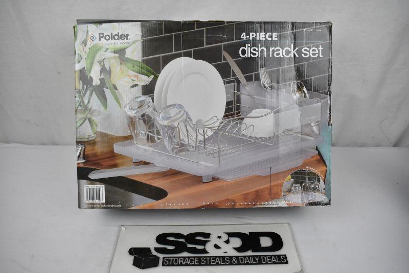 Polder 4 Piece Dish Rack Set Slide Out Drying Tray, Clear, $22 Retail - New