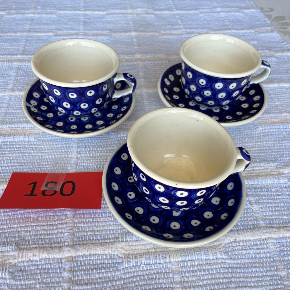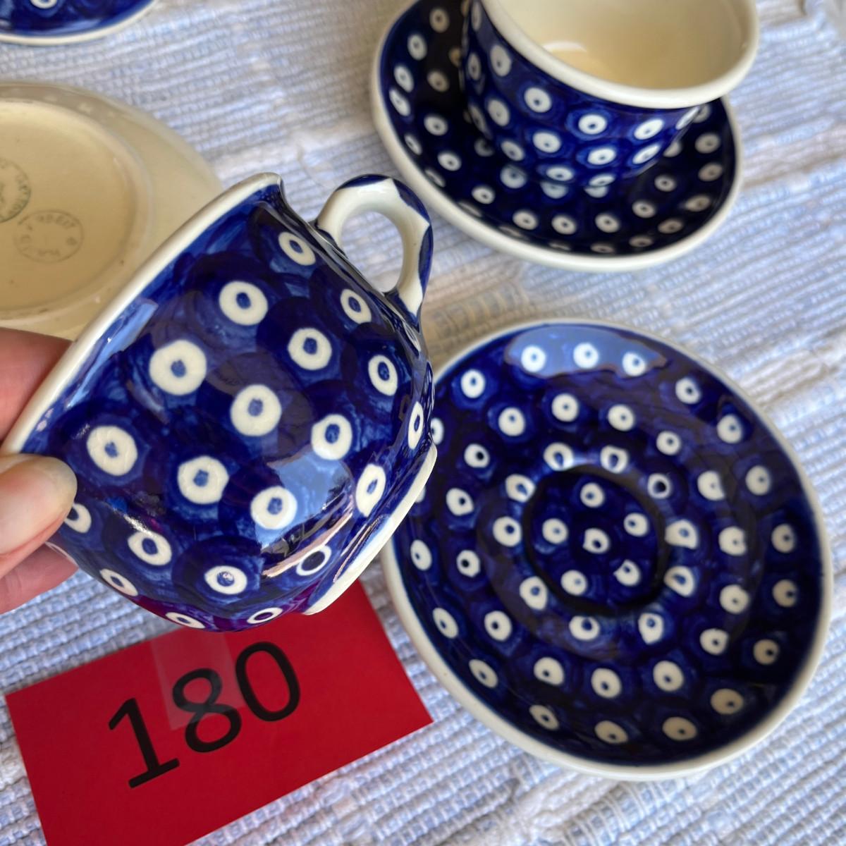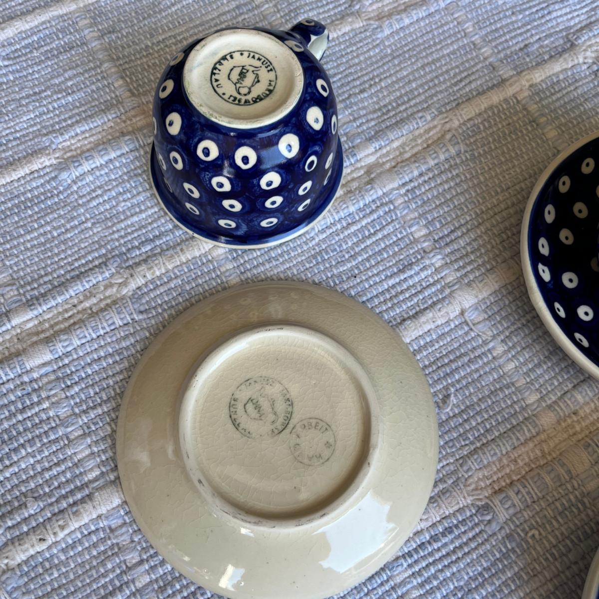 We have lots of this Polish pottery to offer! They are grouped by patterns! 3 Dots cups & saucers.