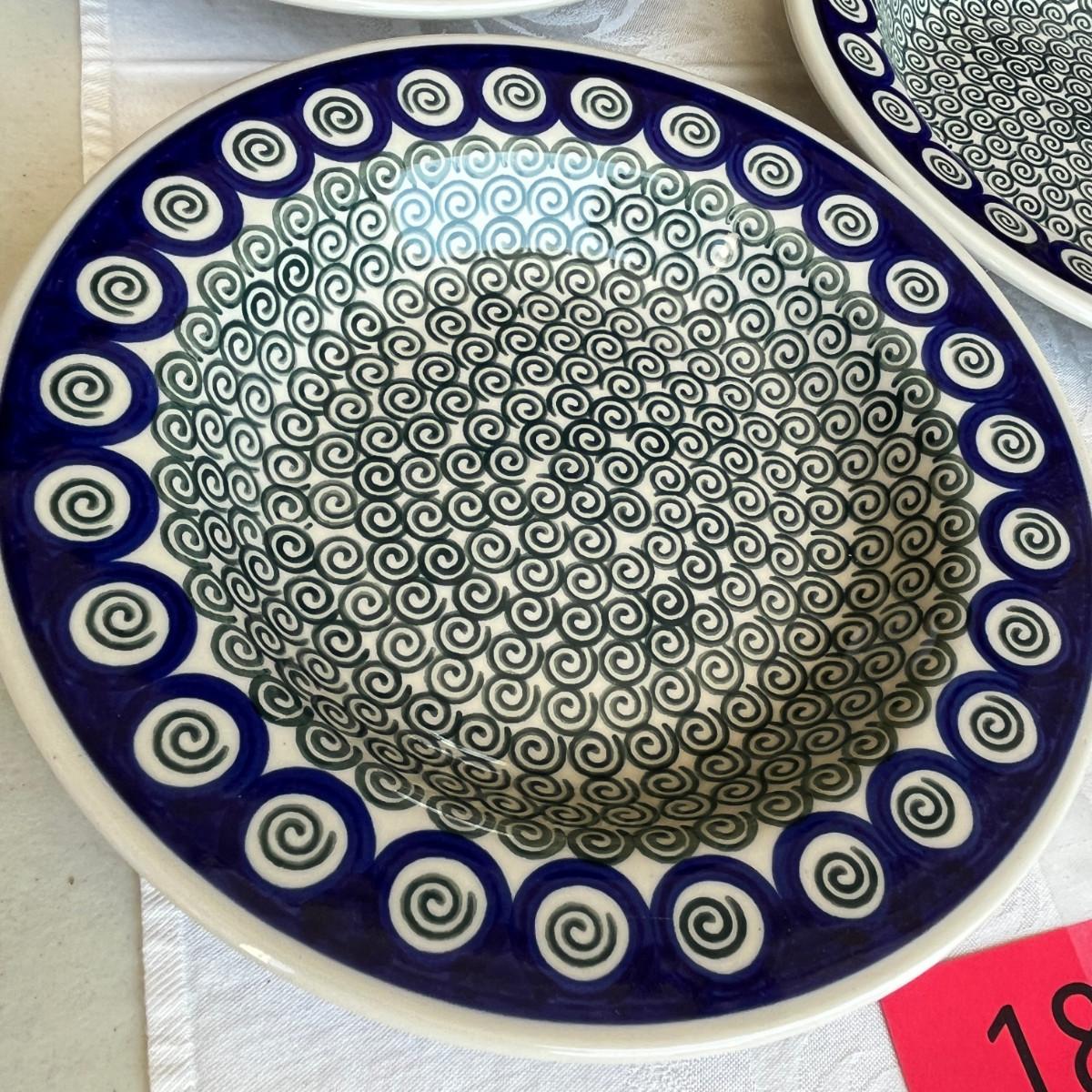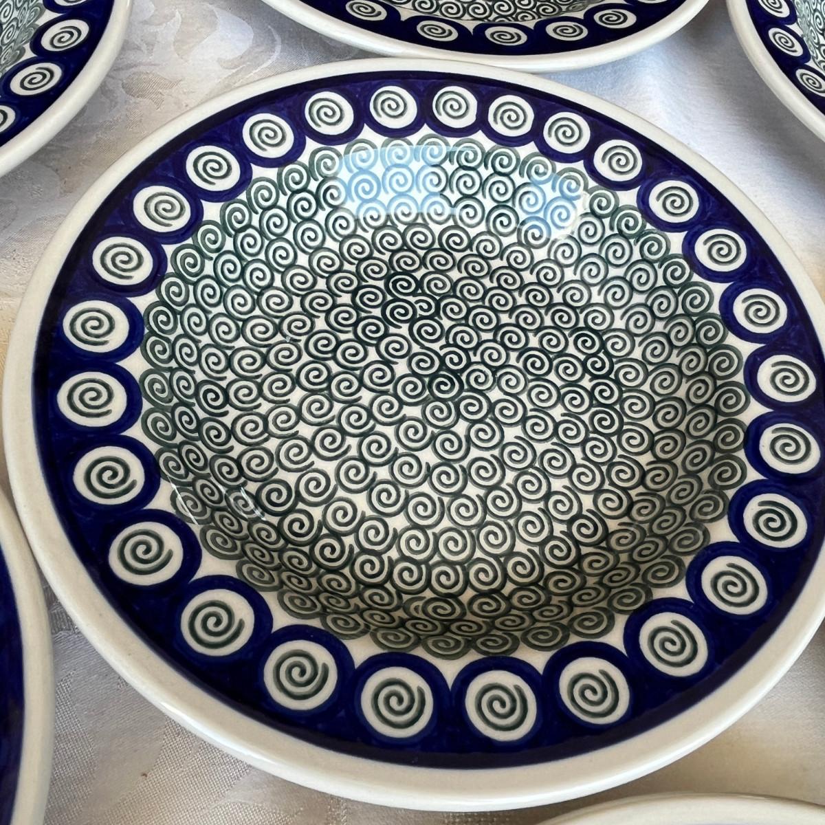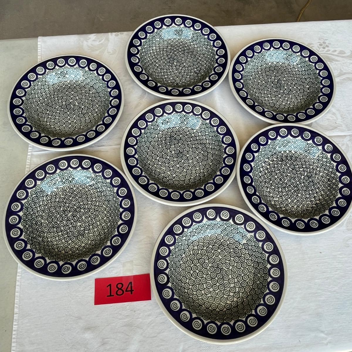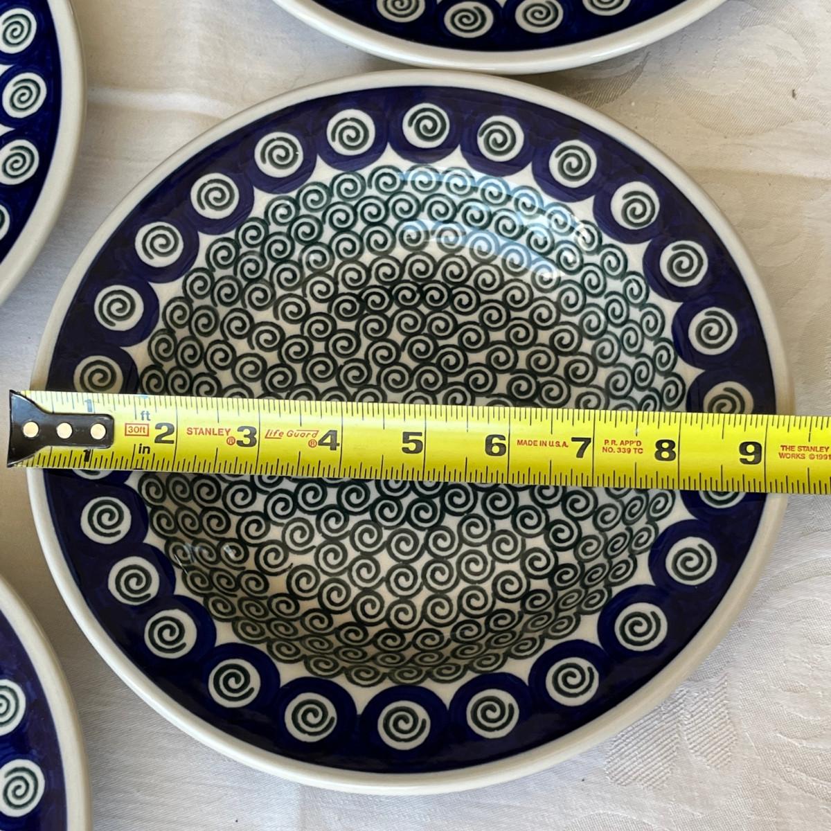 Polish Blue & White Pottery Lot of 7 Small Dinner Plates
