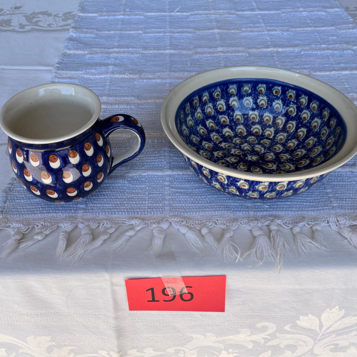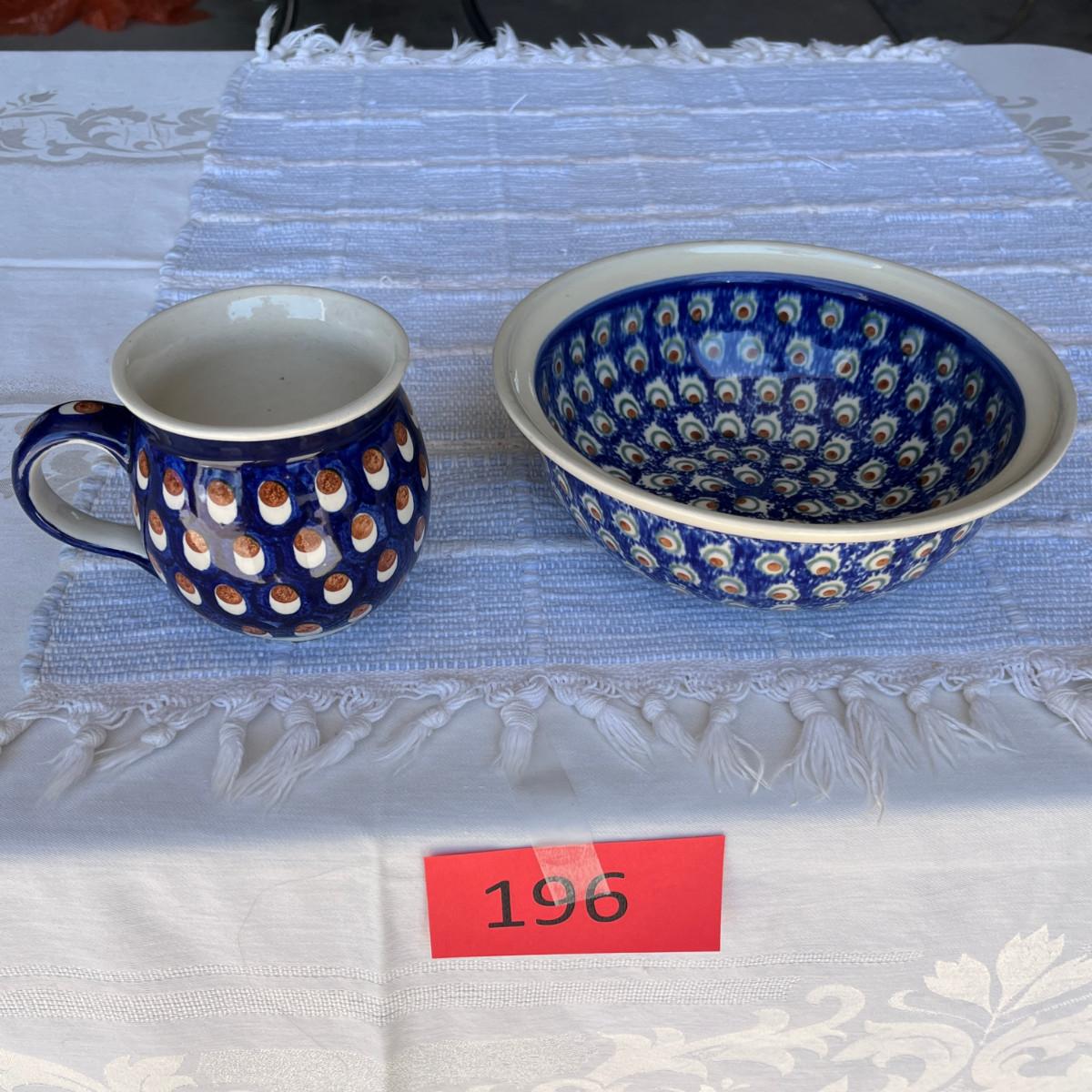 Polish Blue & White Pottery Mug and bowl